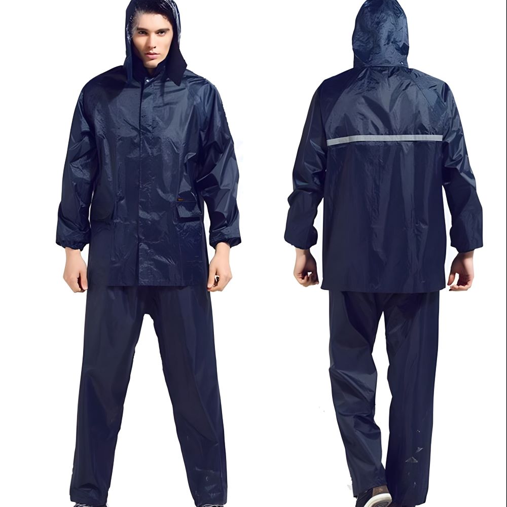 Bộ áo mưa vải dù với thiết kế gồm áo kèm nón và quần riêng biệt, mang đến sự tiện lợi và linh hoạt khi sử dụng. Sản phẩm được làm từ chất liệu cao cấp, có khả năng chống thấm nước tuyệt đối, bảo vệ người dùng trong thời tiết mưa to gió lớn.