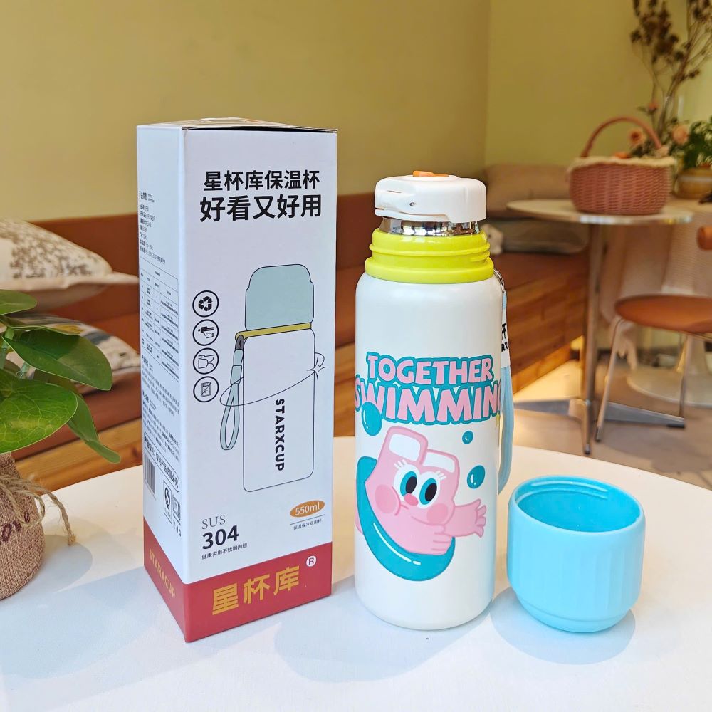 Bình giữ nhiệt hoạt hình từ Kho sỉ đồ gia dụng Linh Kiện Khánh Nhân - giải pháp giữ nhiệt đồ uống hoàn hảo với thiết kế đáng yêu, nhiều họa tiết. Sản phẩm sử dụng chất liệu inox 316 cao cấp, dung tích 550ml tiện lợi, là người bạn đồng hành lý tưởng trong học tập và các hoạt động ngoài trời.