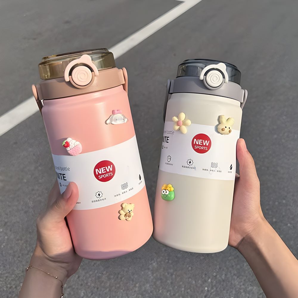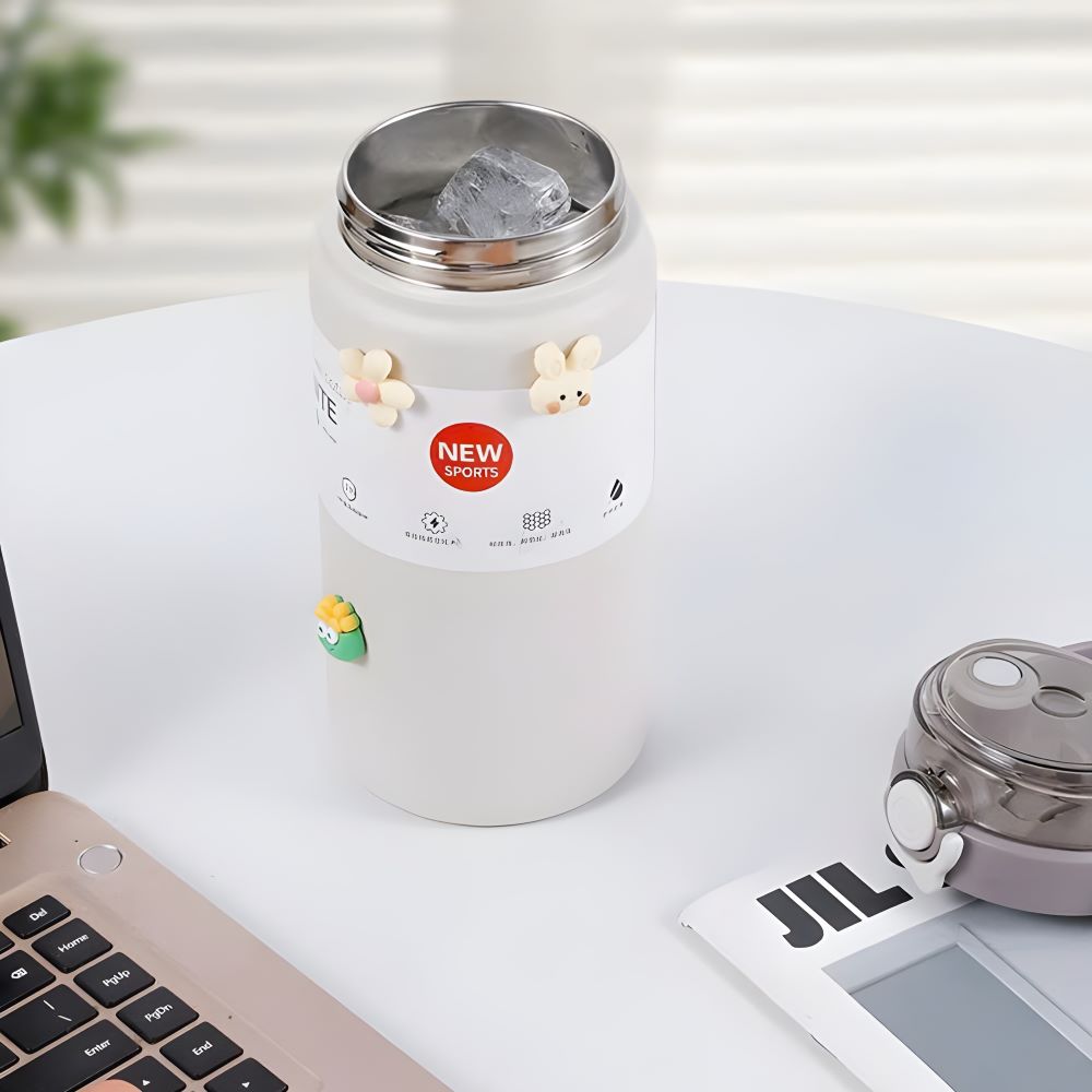 - Bình được trang trí với các sticker dễ thương tạo điểm nhấn