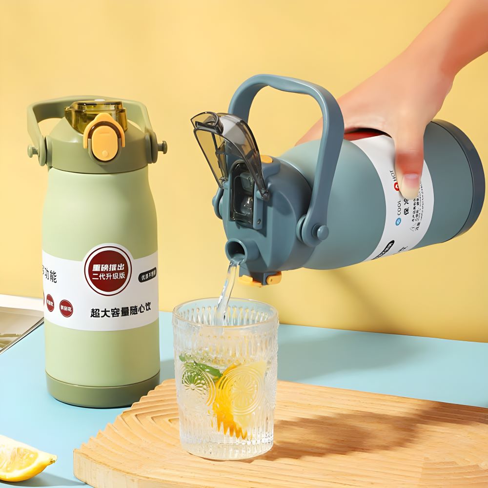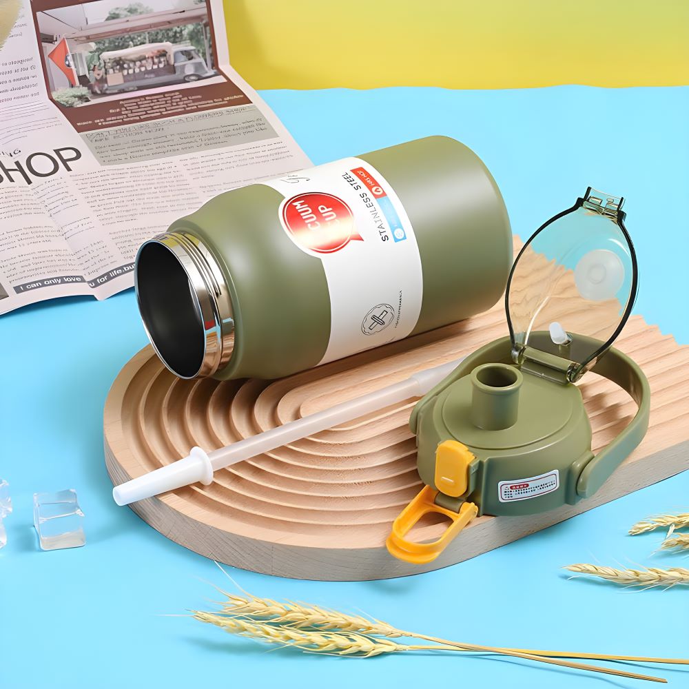 Phần nắp bật tiện lợi với thiết kế khóa chắc chắn, tích hợp ống hút giúp dễ dàng sử dụng khi di chuyển. Quai xách màu vàng tương phản tạo điểm nhấn cho sản phẩm, vừa thời trang vừa tiện dụng. Thân bình trơn láng, dễ dàng vệ sinh sau mỗi lần sử dụng.