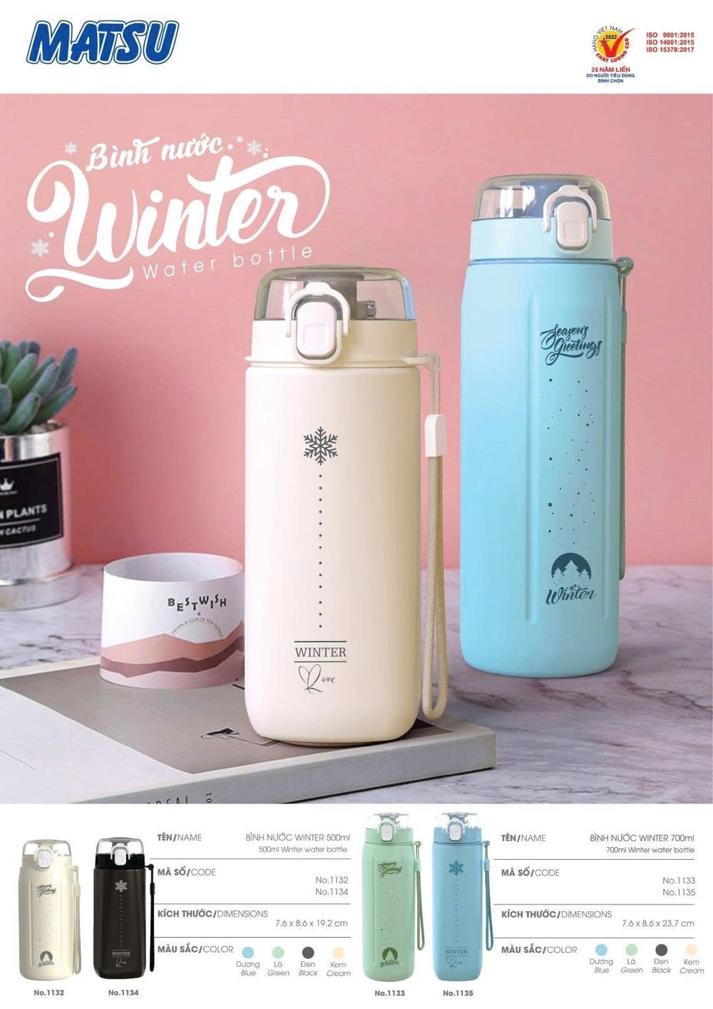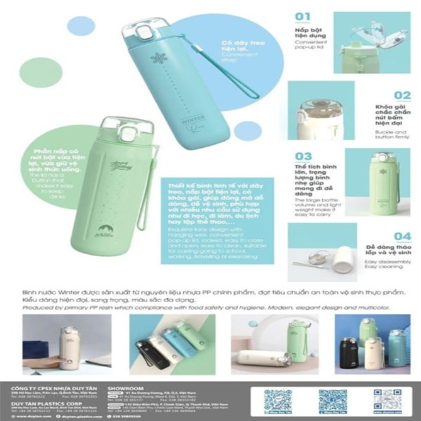 Tên sản phẩm: Bình nước Winter nắp bật kèm dây đeo 500ml Duy Tân