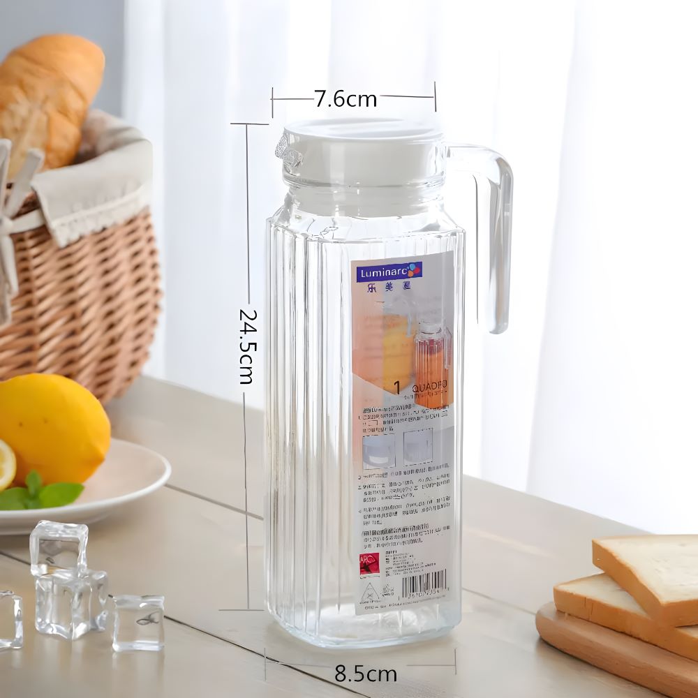 Bình thủy tinh YZ02 nổi bật với thiết kế đường gân dọc tinh tế, vừa tăng độ chắc chắn cho bình vừa tạo điểm nhấn thẩm mỹ đầy cuốn hút. Đường viền nhẹ nhàng cùng tay cầm được thiết kế công thái học giúp người dùng dễ dàng cầm nắm và rót nước mà không lo trượt tay.