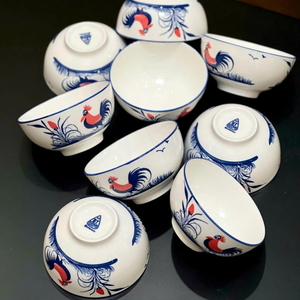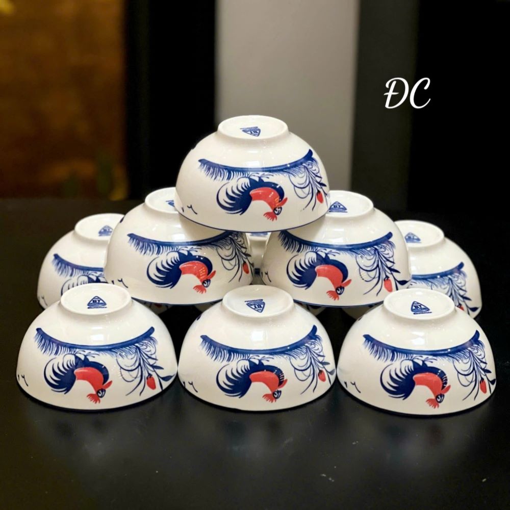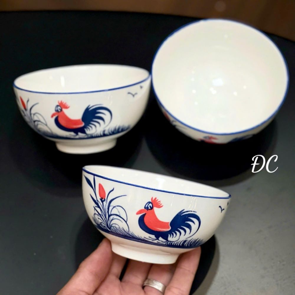 Bộ 10 Cái Chén Sứ Ăn Cơm Họa Tiết Con Gà Truyền Thống