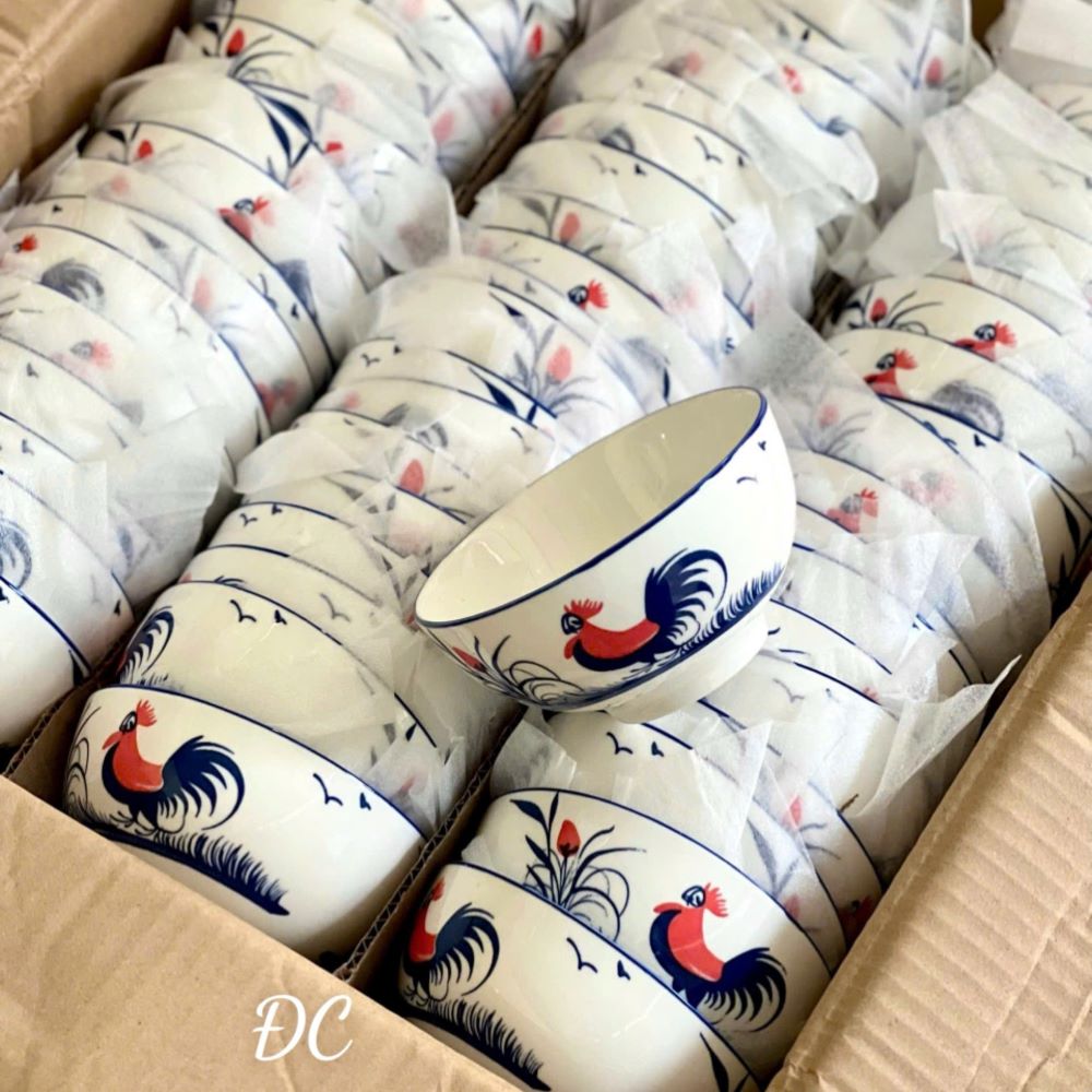 Linh Kiện Khánh Nhân - tổng kho sỉ gia dụng lớn và uy tín nhất tại TP. Hồ Chí Minh giới thiệu bộ chén sứ ăn cơm họa tiết con gà truyền thống.