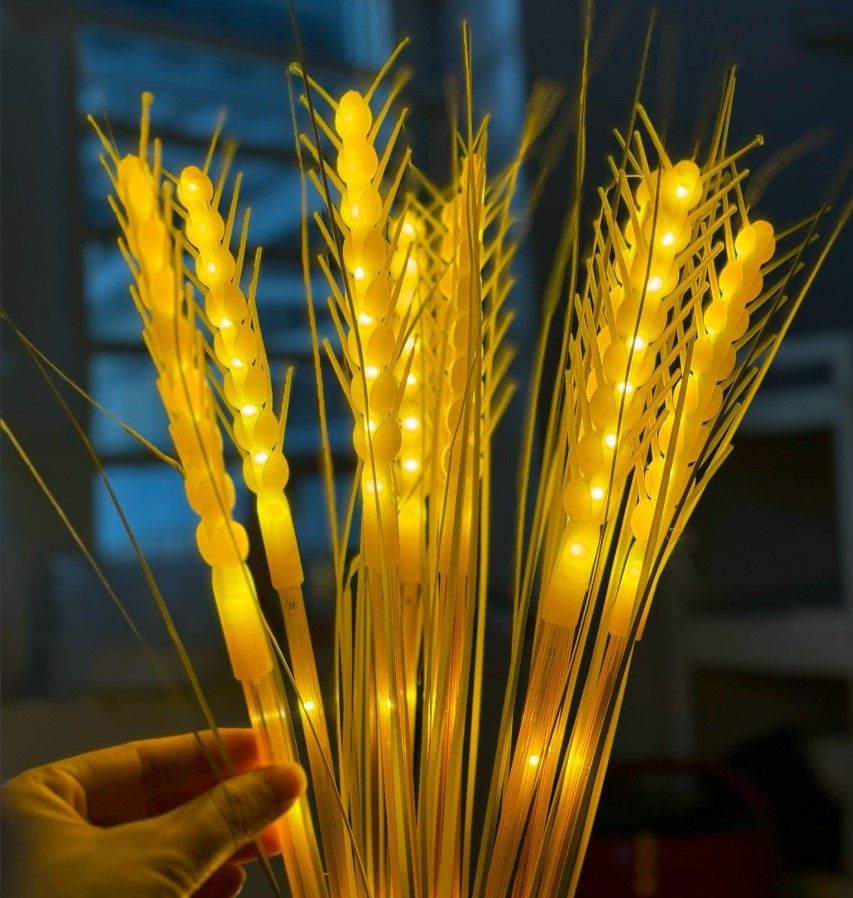 Bó 10 cây lúa có đèn LED tượng trưng cho sự ấm no, sung túc trong gia đình. Bông lúa được thiết kế tỉ mỉ, tinh tế cầu kỳ như bông lúa thật, phù hợp để trưng bàn thờ thần tài hay bàn thờ gia tiên nhân dịp đầu năm mới.