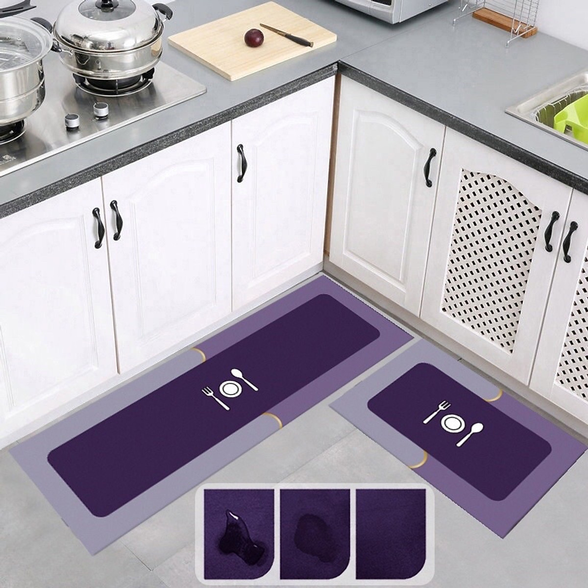 - Thảm được làm bằng PVC + nhung, khô nhanh hơn thảm trải sàn thông thường.
