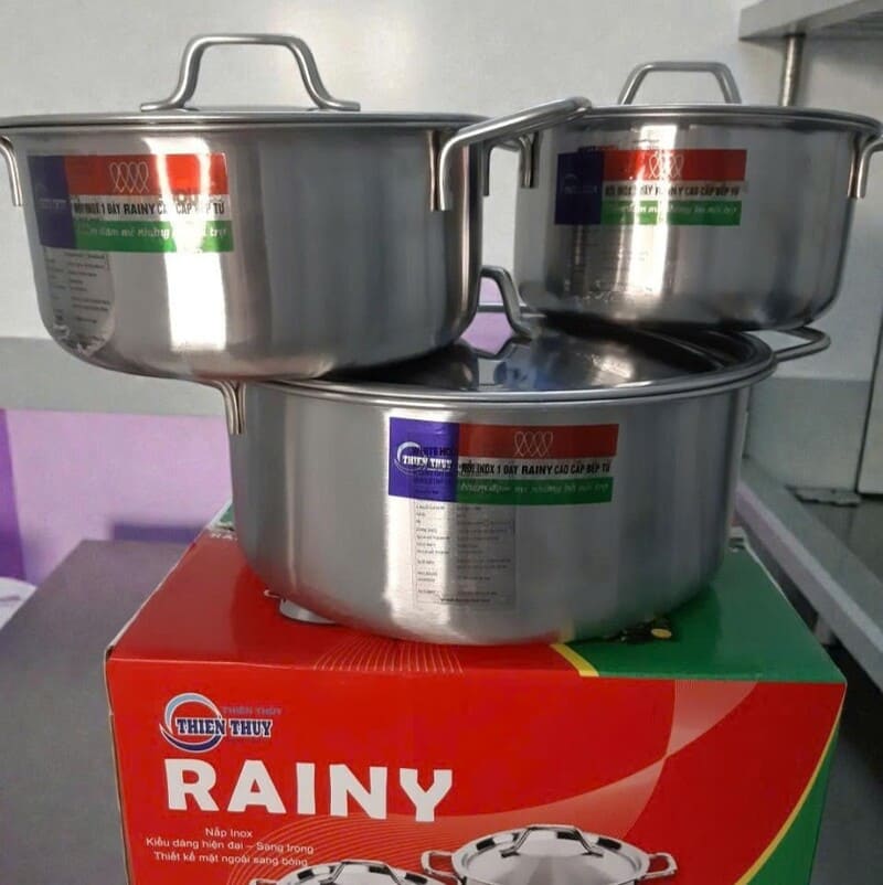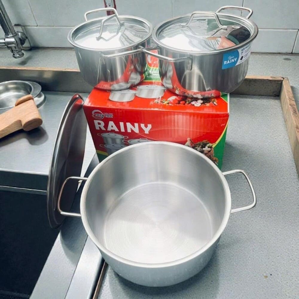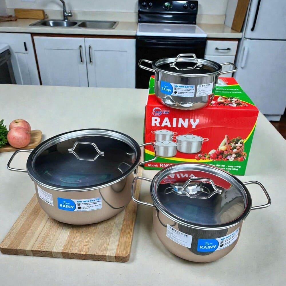 Bộ 3 nồi inox Rainy RN06TTY 4DEM giúp nấu ăn nhanh, giữ nhiệt tốt và an toàn cho sức khoẻ. Chất liệu inox bền đẹp, đáy từ bắt nhiệt nhanh – phù hợp mọi loại bếp, kể cả bếp từ. Thiết kế sang trọng, nắp inox chắc chắn, dễ vệ sinh, rất thích hợp cho gia đình hiện đại. 🍲✨