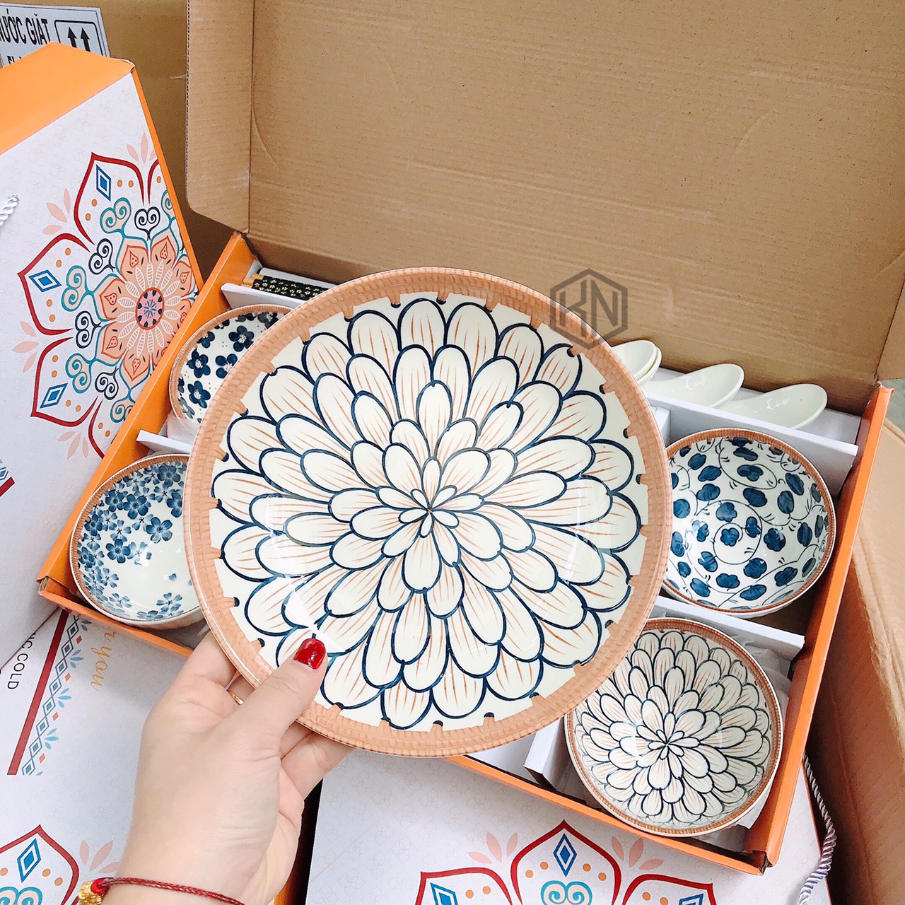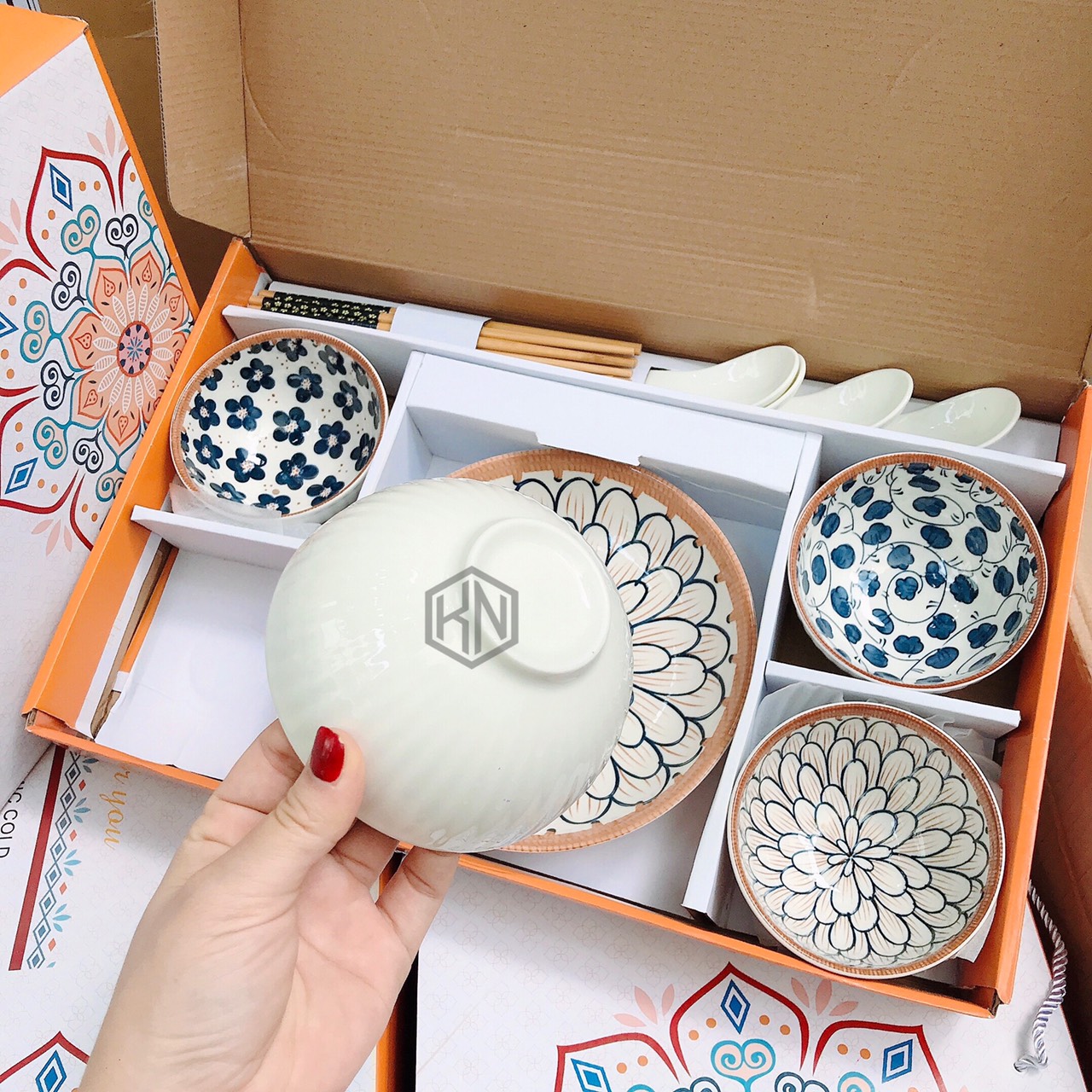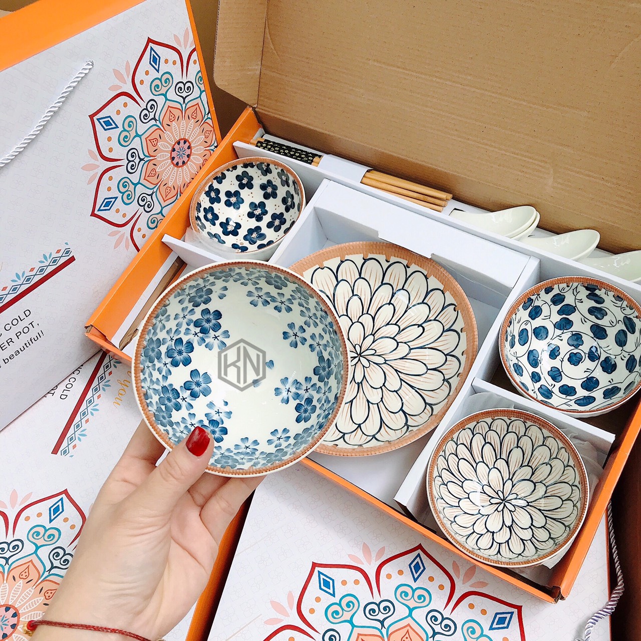 🔸 Bộ 5 bát đĩa hoạ tiết phong cách Nhật Bản kèm đũa muỗng được gói trong hộp có quai xách lịch sự, bạn có thể dùng làm quà tặng người thân, bạn bè vào những dịp đặc biệt. 😉😉😉