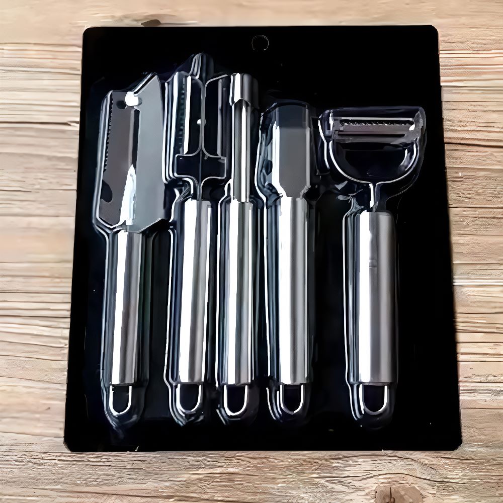 Bộ 5 dao inox bào rau củ quả tiện dụng đa năng - dụng cụ nhà bếp không thể thiếu giúp việc chế biến món ăn trở nên nhanh chóng và chuyên nghiệp hơn. Liên hệ ngay với tổng kho sỉ gia dụng Linh Kiện Khánh Nhân để được tư vấn và đặt hàng với giá ưu đãi nhất!