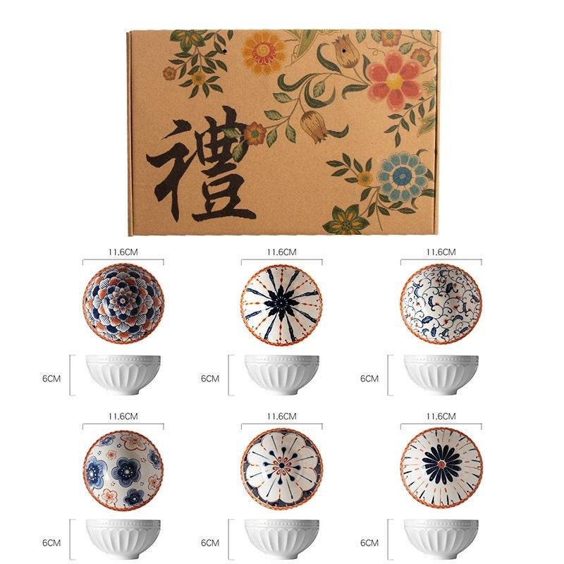*** Điểm nổi bật Bộ 6 chén cơm phong cách Nhật Bản Hoa Văn