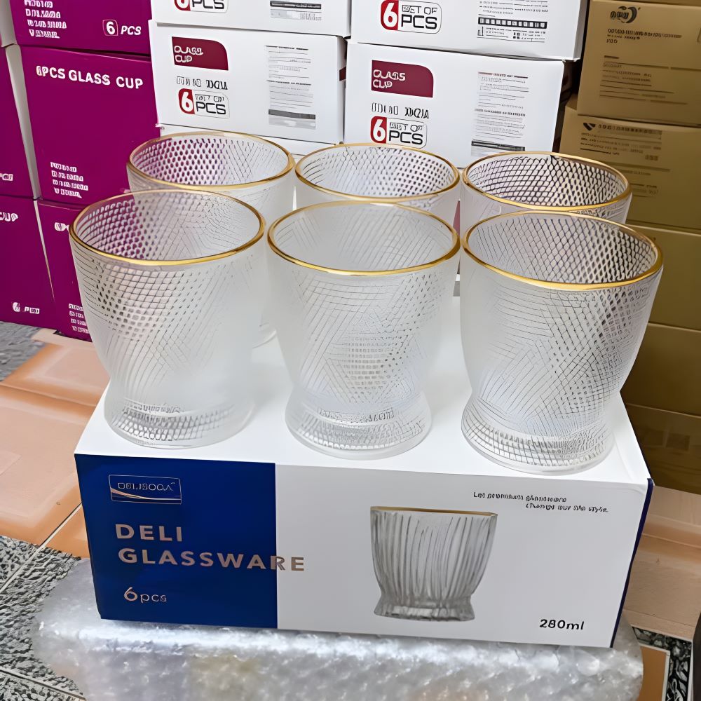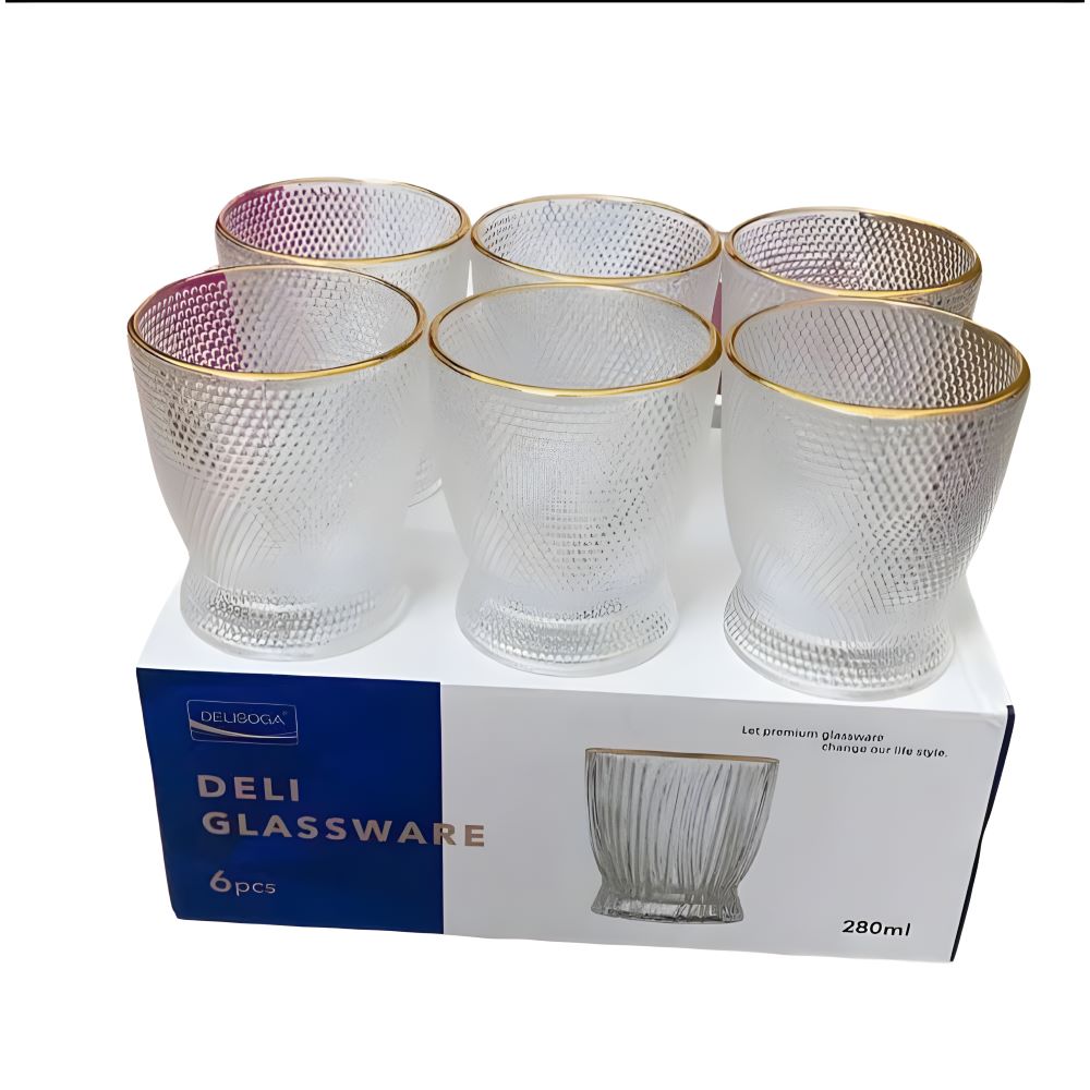 Bộ 6 Cốc Ly Thuỷ Tinh Viền Vàng Chấm Bi 280ml DSKB162