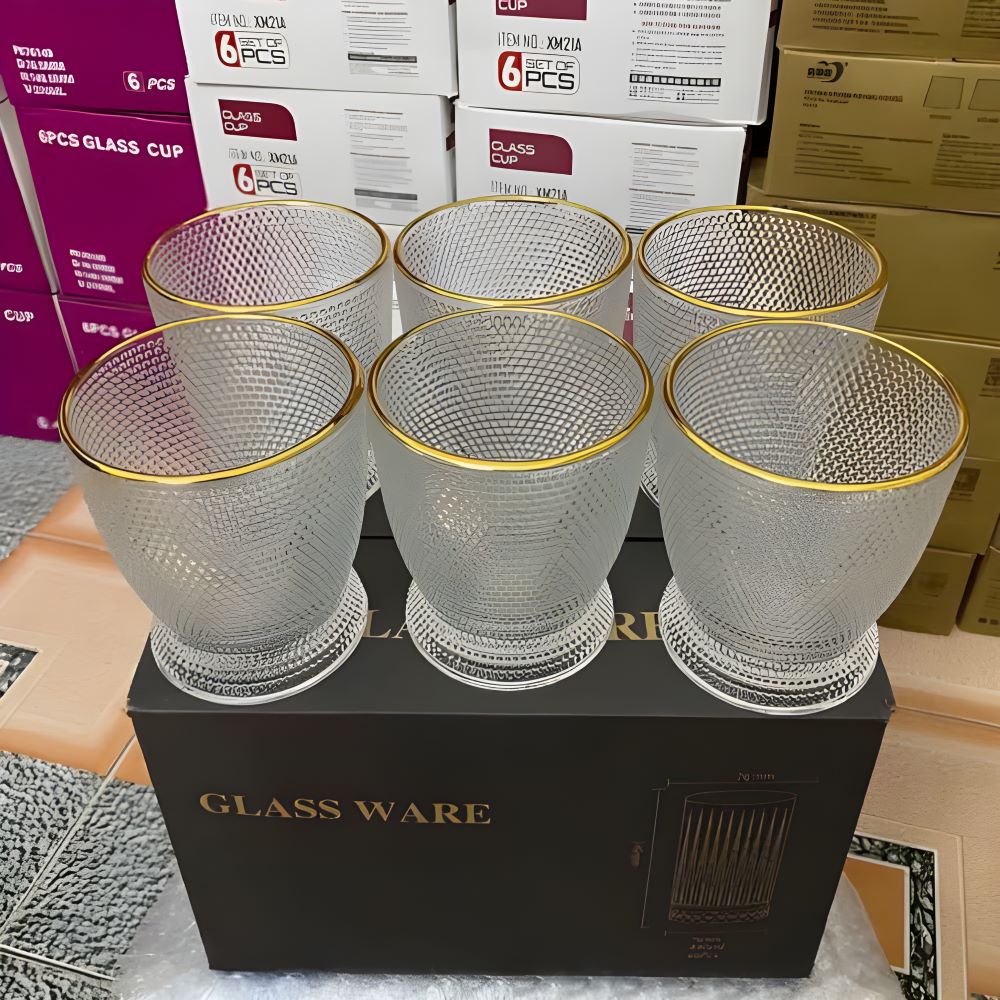 Linh Kiện Khánh Nhân - tổng kho sỉ gia dụng và đồ dùng nhà bếp lớn nhất tại TP. Hồ Chí Minh giới thiệu bộ 6 cốc thuỷ tinh viền vàng chấm bi DSKB162. Sản phẩm với thiết kế sang trọng, họa tiết chấm bi tinh tế cùng viền vàng cao cấp, mang đến nét đẹp thanh lịch cho không gian sử dụng. Đáp ứng tiêu chí "TIỆN ÍCH - CHẤT LƯỢNG - GIÁ RẺ".