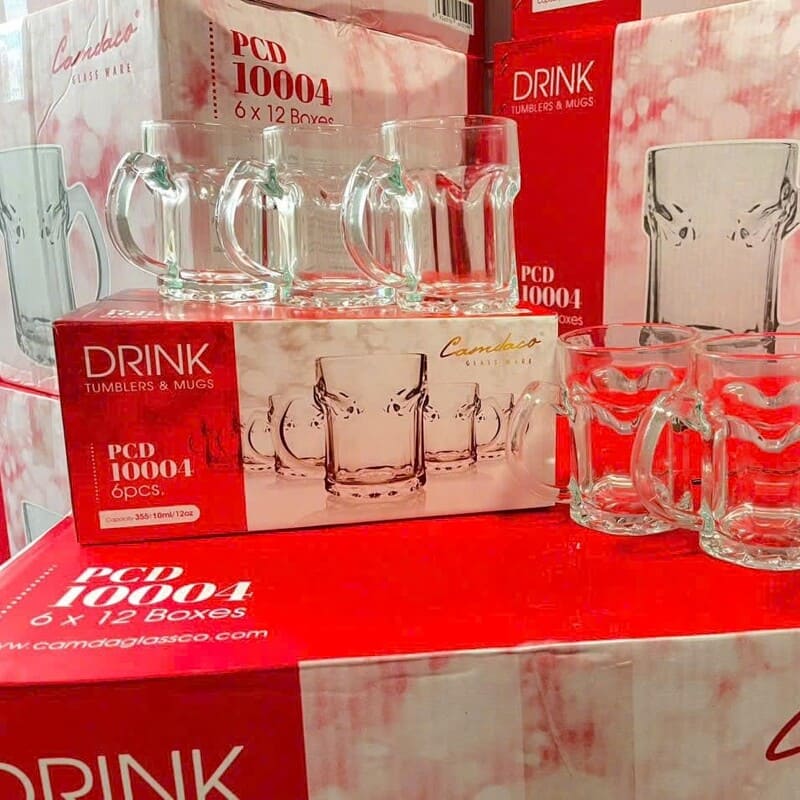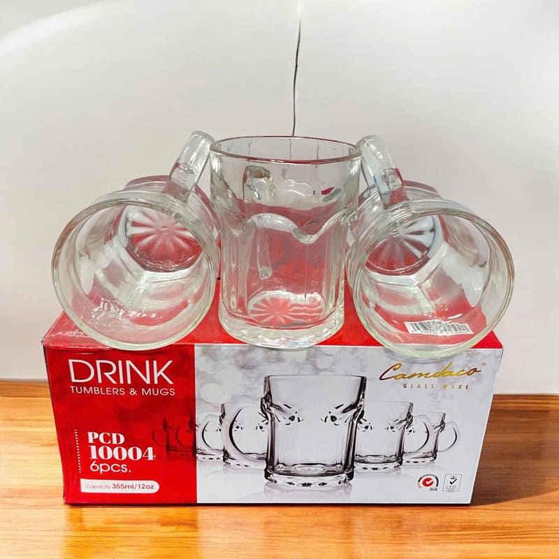 Bộ 6 ly thủy tinh uống bia PCD10004 dung tích 355ml mang thiết kế hiện đại với quai cầm chắc chắn, giúp thưởng thức bia mát lạnh dễ dàng và thoải mái. Thủy tinh trong suốt, bền đẹp, thích hợp dùng tại gia đình, quán nhậu hoặc làm quà tặng sang trọng. 🍺✨