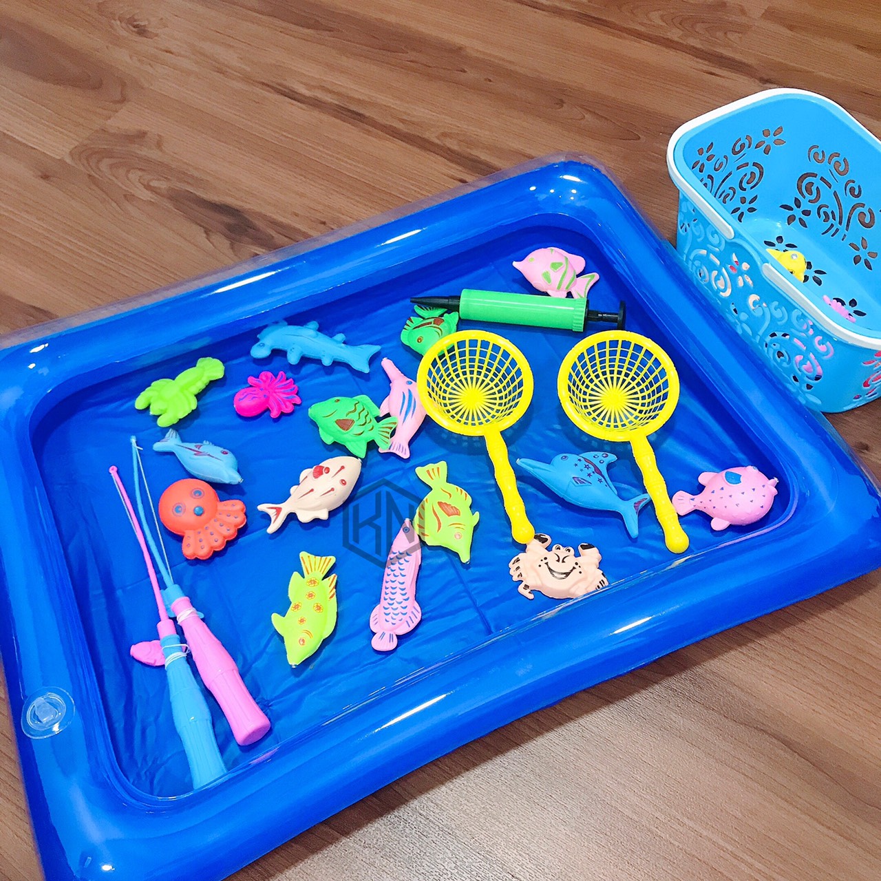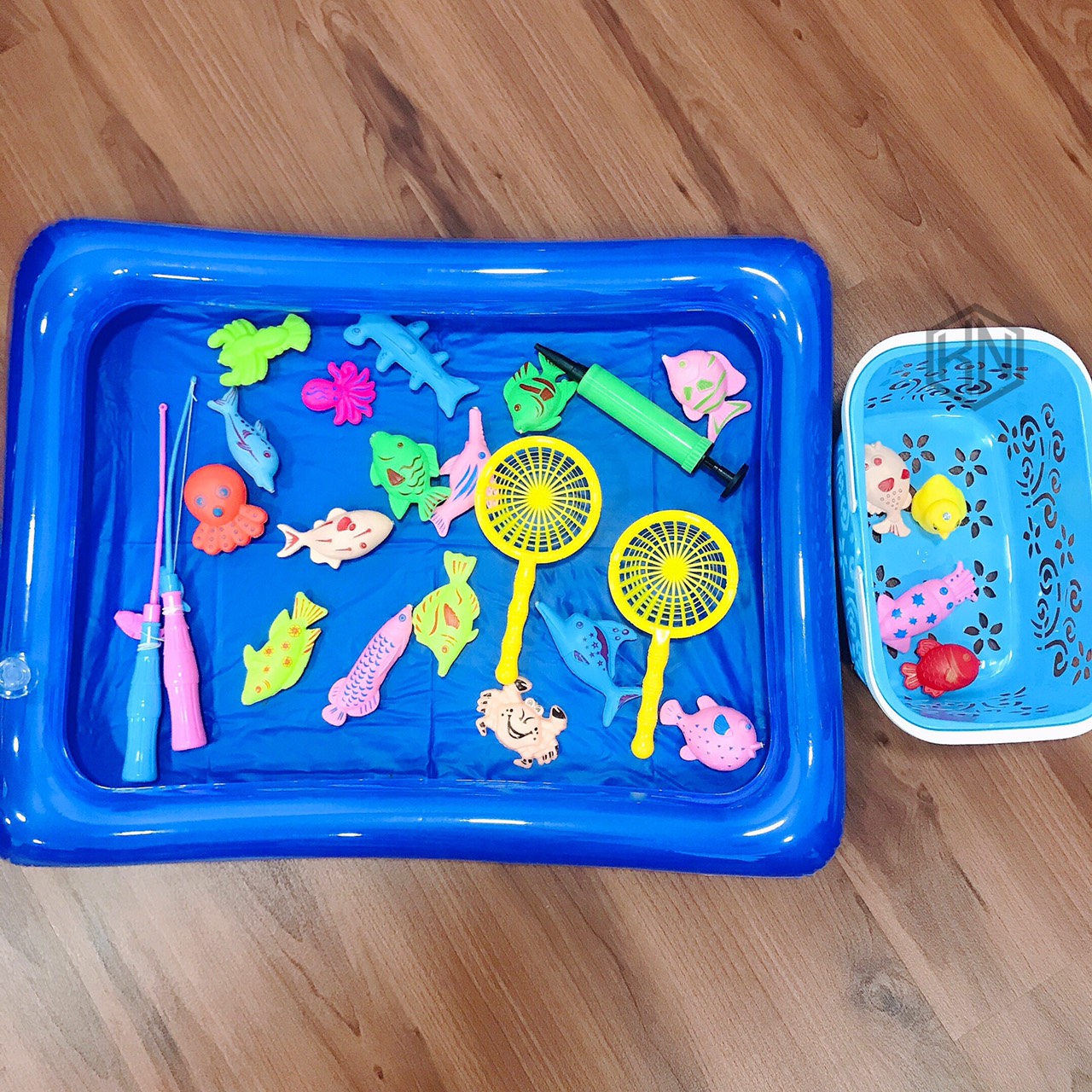 🔸 1 bể, 1 bơm, 1 rổ đựng, các loại con vật, 2 vợt và 2 cần câu 😉😉😉