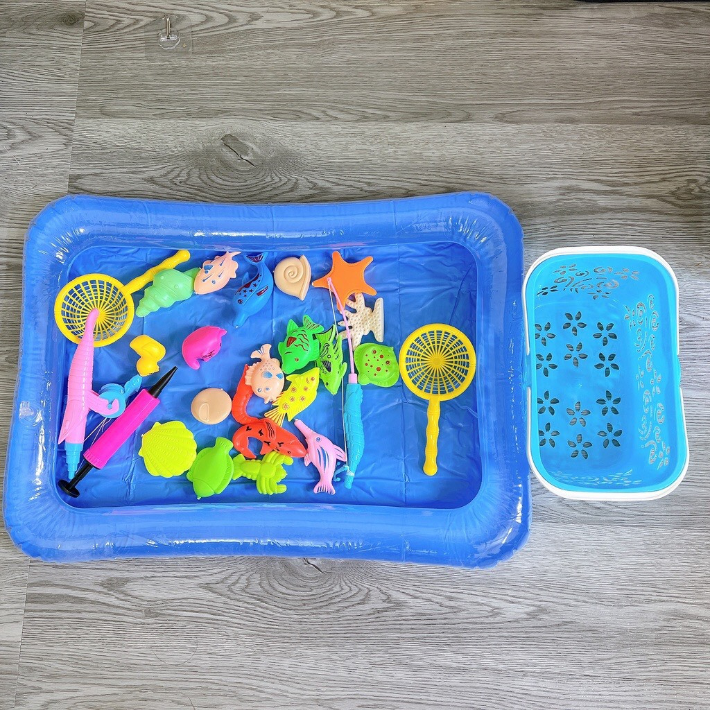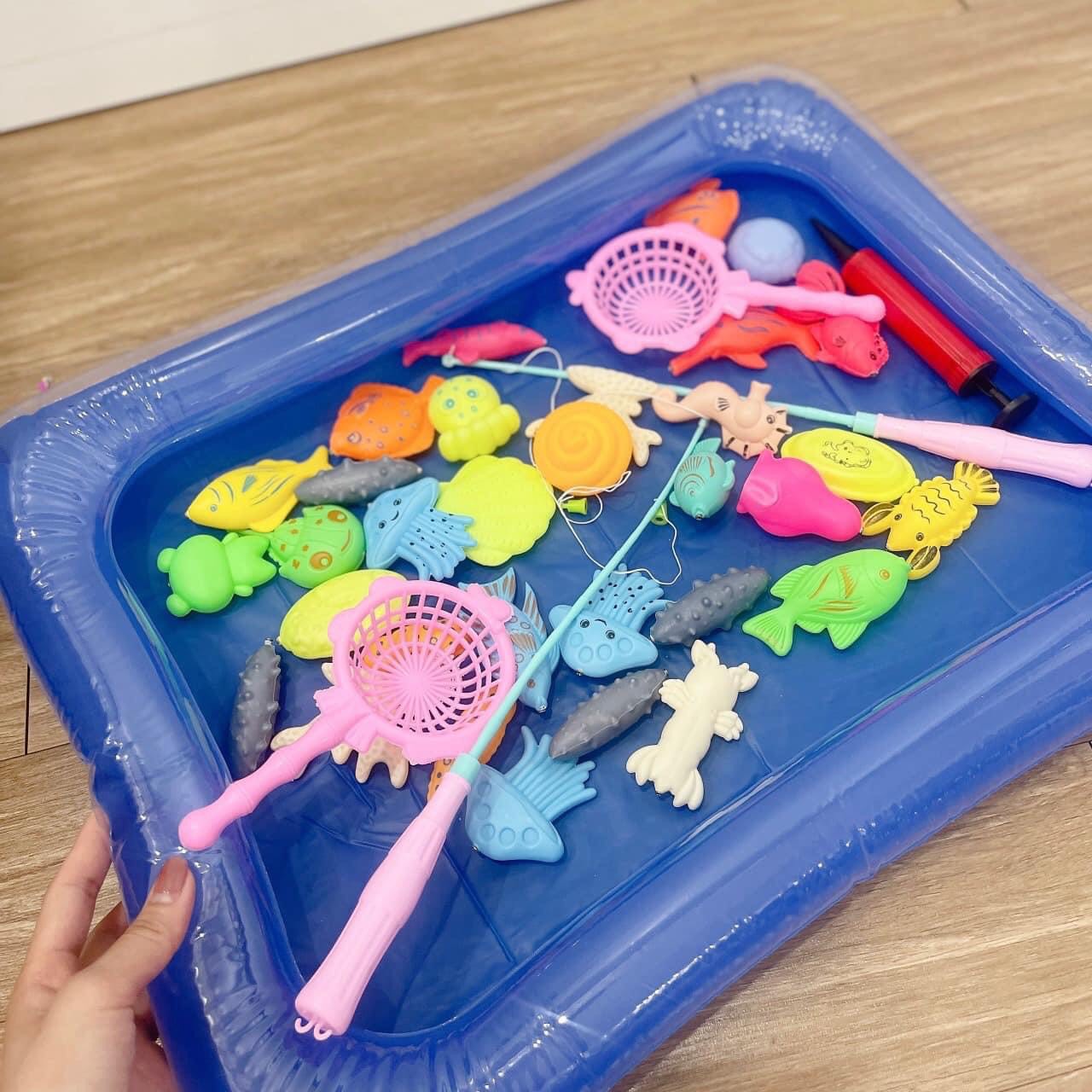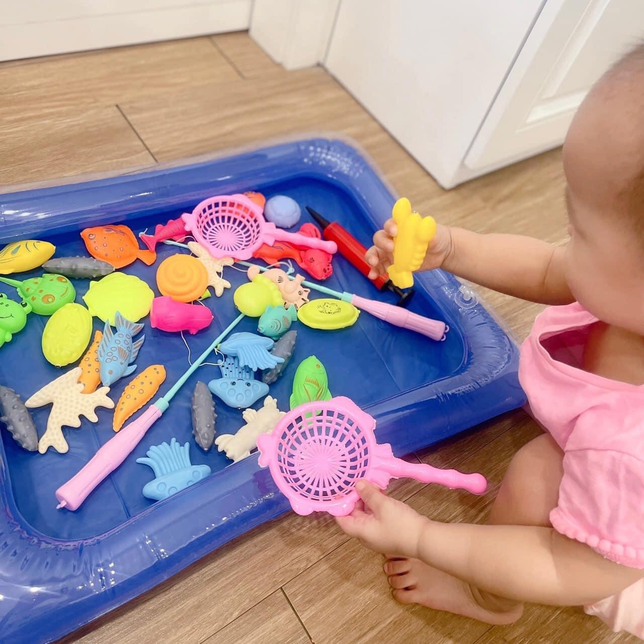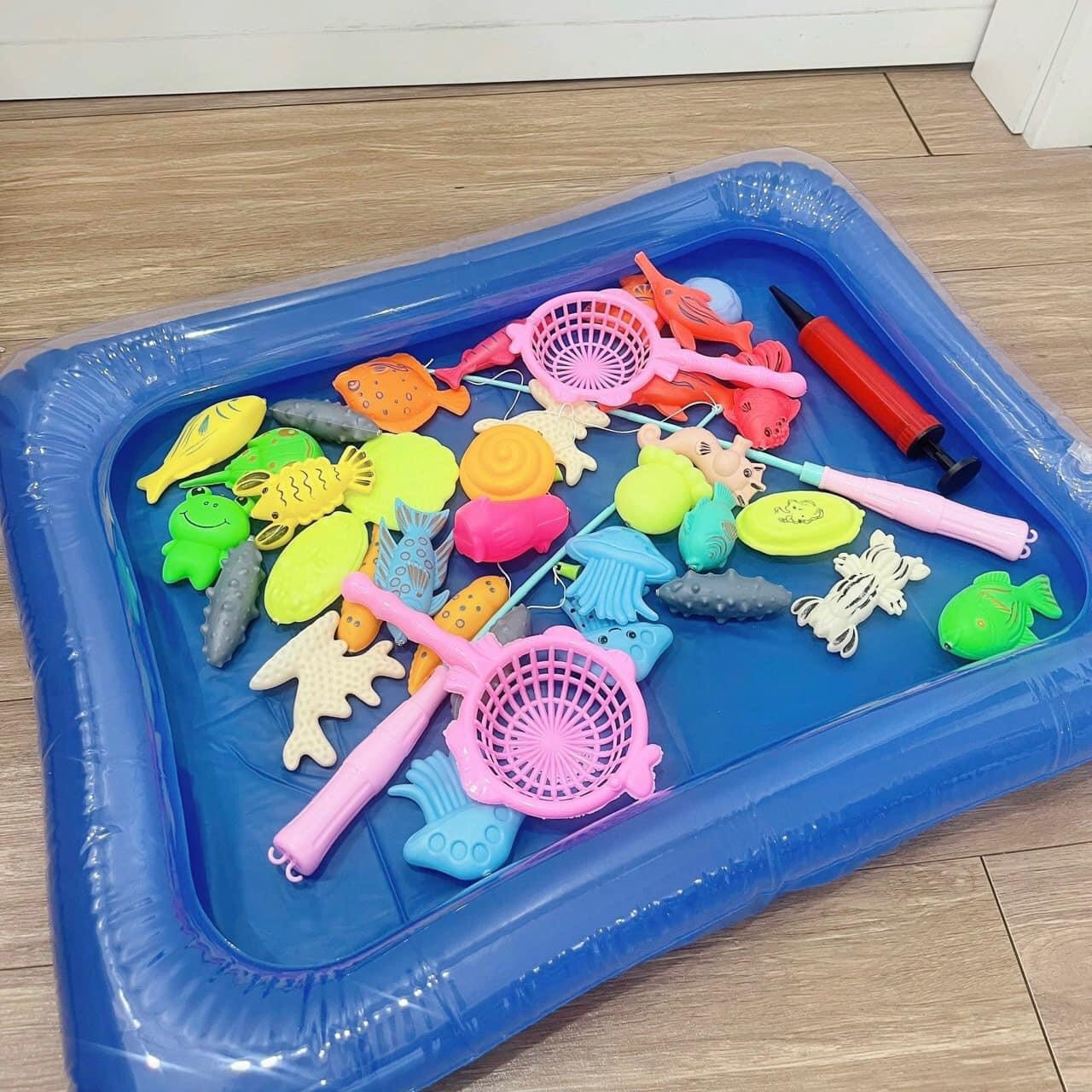 Đồ chơi câu cá cho bé kèm bể phao giúp bé và bố mẹ vui chơi giải trí bên con bằng trò câu sinh vật biển với nhiều loại, màu sắc phong phú ngay tại nhà. 😍😍😍