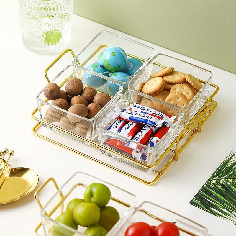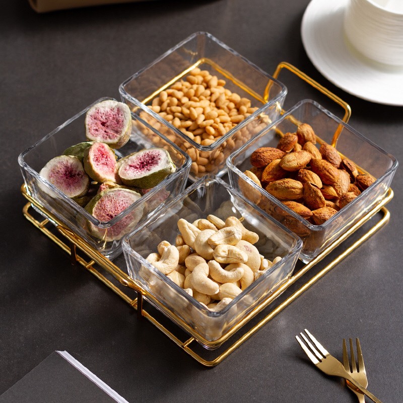 🔸 Bộ khay được thiết kế thêm 2 quai cầm tay chắc chắn tiện lợi, sáng tạo vượt bậc so với những mẫu khay đĩa đựng bánh mứt hoa quả thông thường.