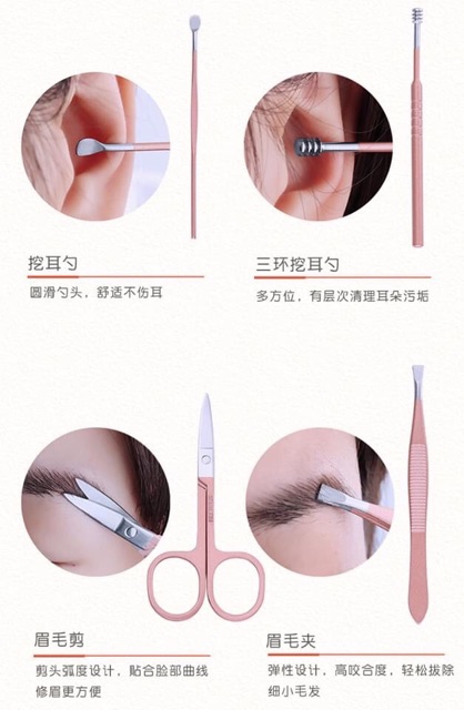 – Bộ sản phẩm gồm 18 món: 3 đồ bấm móng tay lớn + vừa + nhỏ, 1 kềm cắt da chết, 1 kềm cắt khoé, 1 cây đẩy da chết, 1 dao cạo móng, 1 cây làm sạch móng, 1 dũa, 1 kéo tỉa lông mày, 1 dao tỉa lông mày, 1 thìa ngoáy tai, 1 thìa tròn ngoáy tai, 1 cây nặn mụn... tổng 18 món các loại các chế nhé. K thiếu cái j luôn ạ