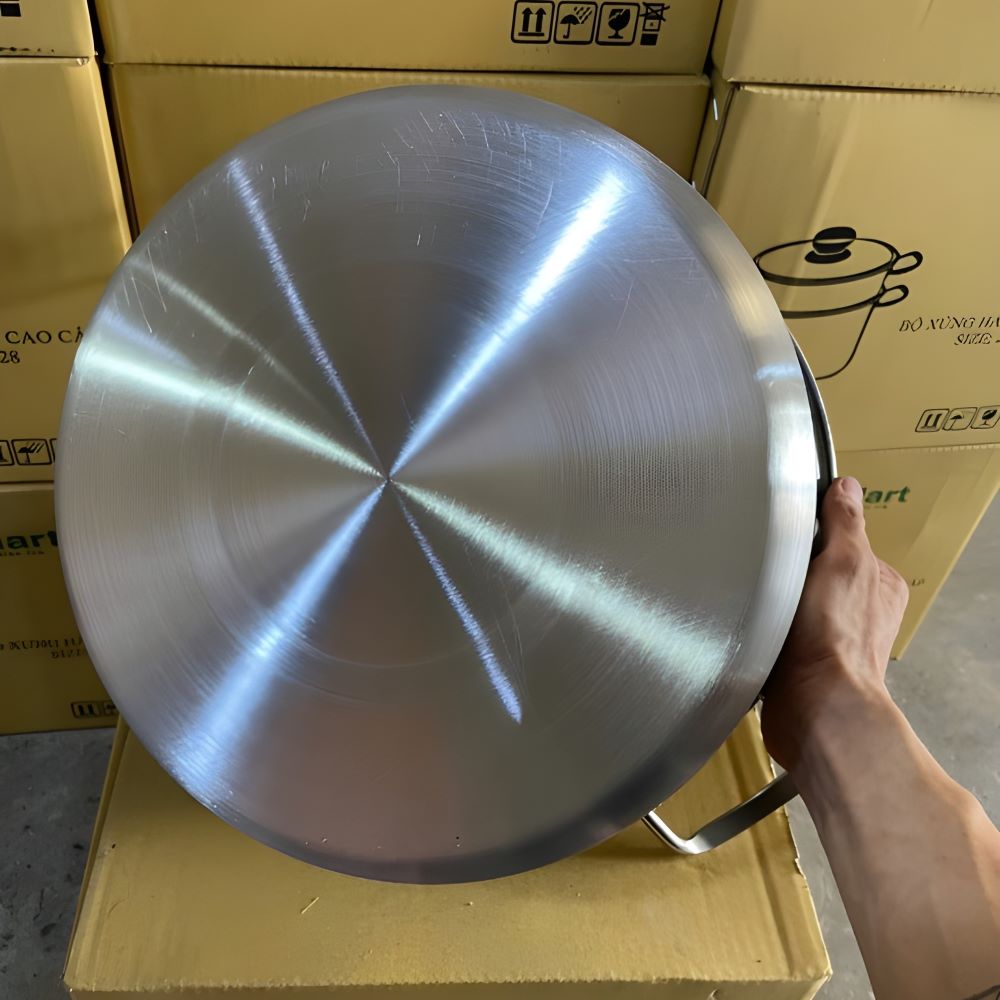 Đáy nồi phẳng, tiếp xúc tốt với mọi loại bếp như bếp gas, bếp từ, bếp hồng ngoại, mang lại hiệu quả truyền nhiệt cao và tiết kiệm năng lượng. Bề mặt sáng bóng không chỉ tạo nên vẻ đẹp sang trọng cho căn bếp mà còn rất dễ vệ sinh sau khi sử dụng.