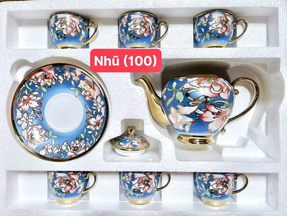 ✔️ Hoa văn vàng nhũ tinh xảo, sang trọng, nâng tầm trải nghiệm thưởng trà