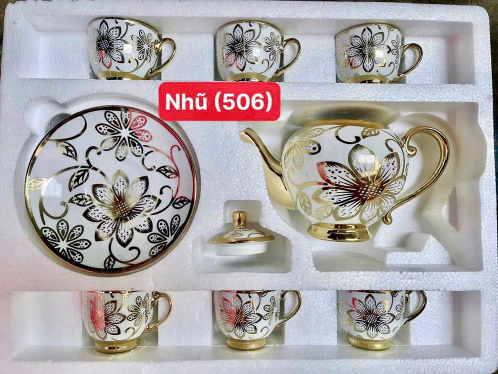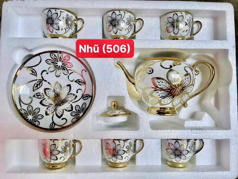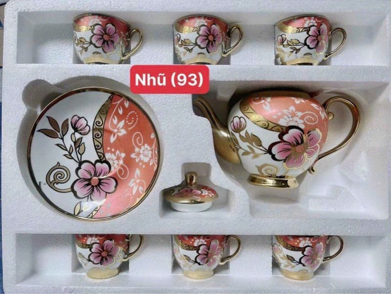 Tên sản phẩm: Bộ tách trà hoa văn vàng nhũ hoa cao cấp