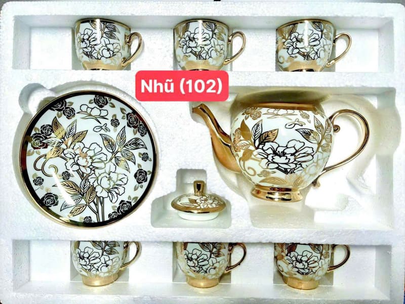 Chất liệu: Sứ cao cấp, hoa văn vàng nhũ sang trọng