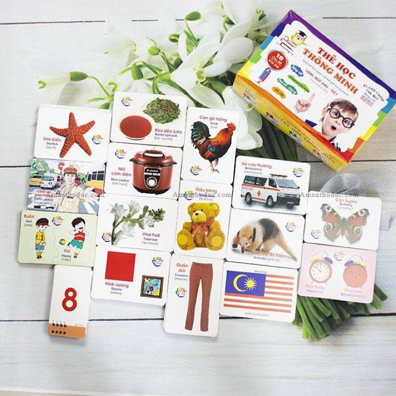 – Với sản phẩm bộ 416 thẻ học thông minh song ngữ Việt – Anh cho bé yêu gồm 16 chủ đề phong phú và đa dạng, hứa hẹn không những sẽ khiến trẻ thêm động lực để tìm tòi, học hỏi về thế giới xung quanh mà còn bổ sung thêm vốn từ vựng, giúp bé thêm tự tin trong bộ môn tiếng Anh quan trọng sau này.