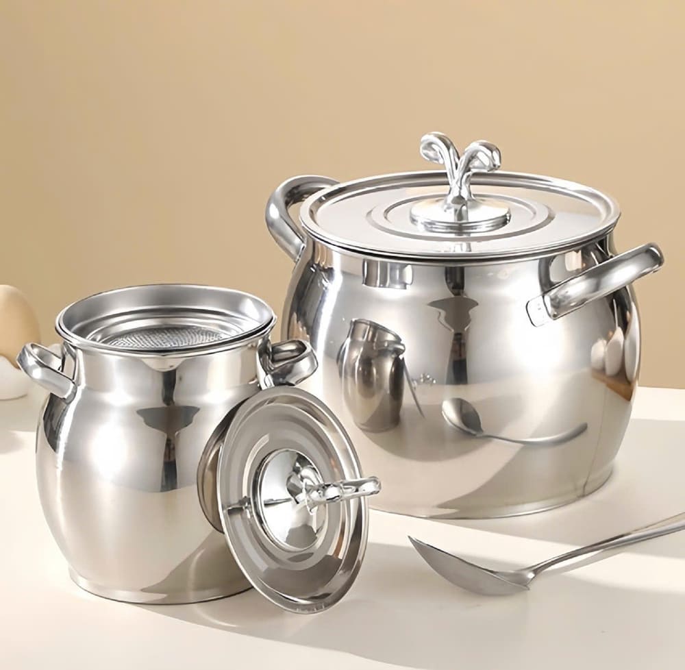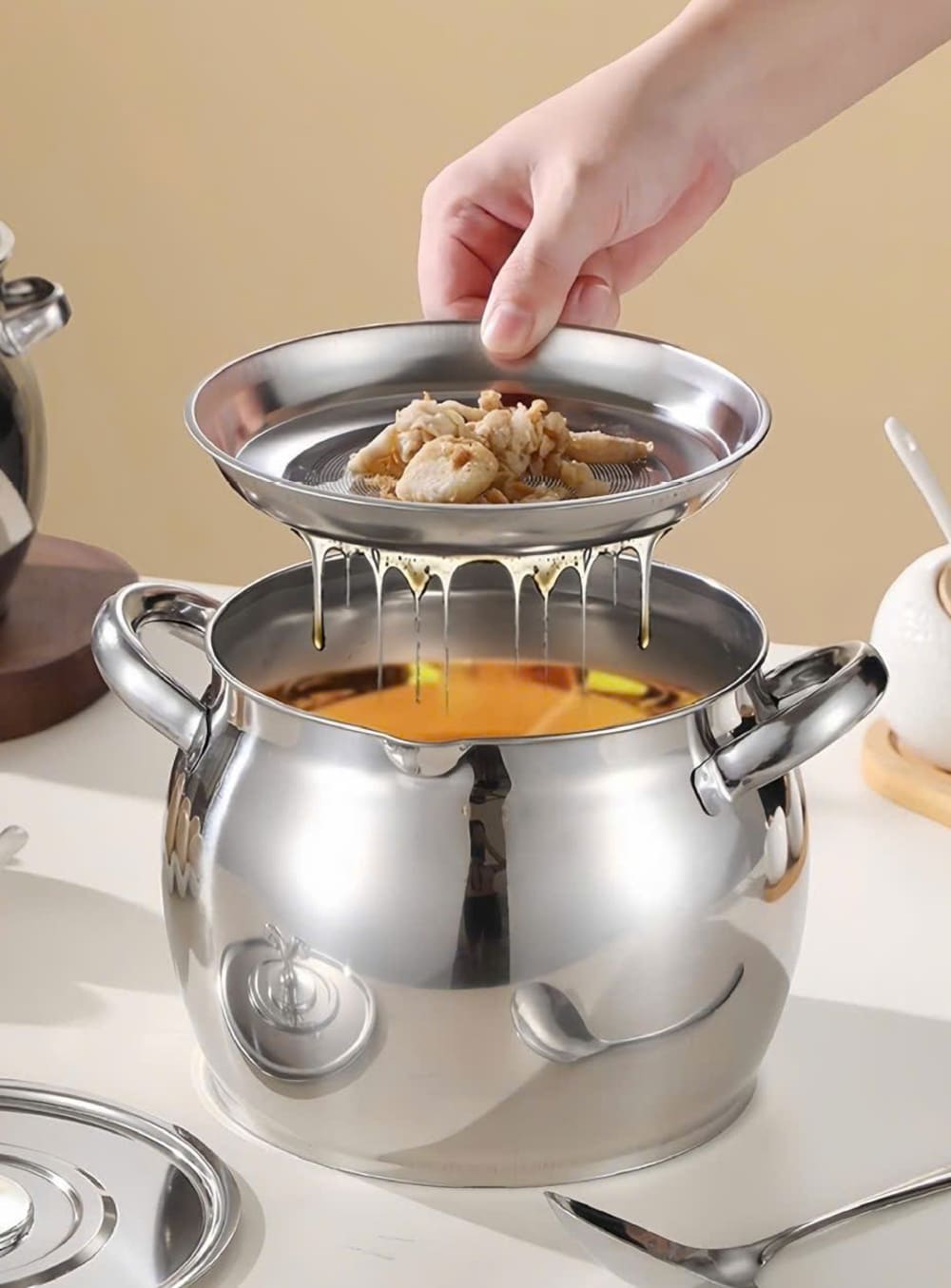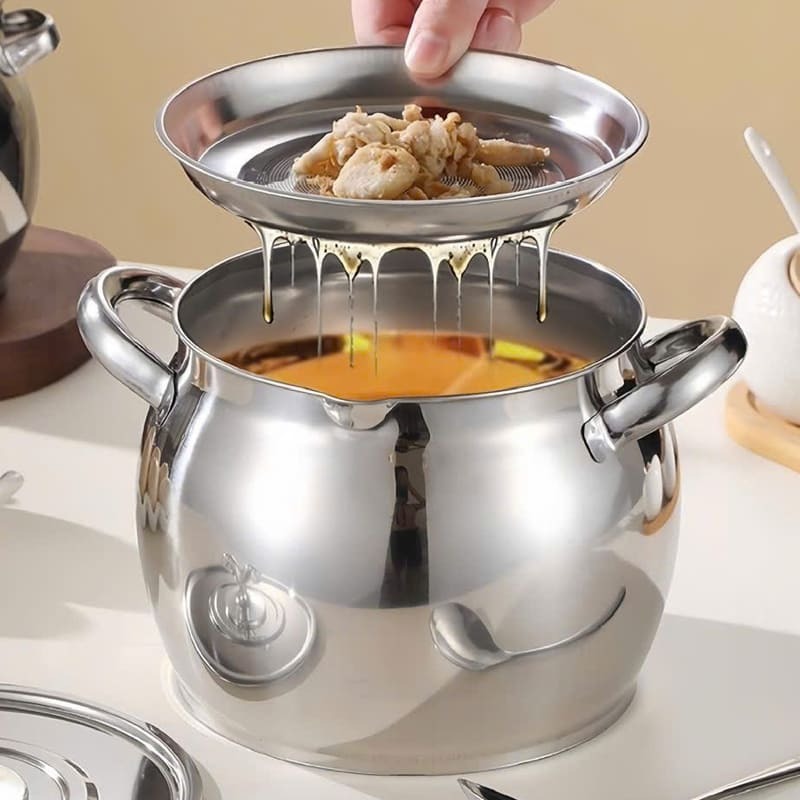 Ca lọc dầu inox kèm muỗng tai thỏ 2.6L size 14cm là vật dụng tiện ích giúp bạn lọc và bảo quản dầu ăn sau khi chiên rán một cách dễ dàng và sạch sẽ. Thiết kế thông minh với nắp đậy kín, lưới lọc mịn và tay cầm chắc chắn, vừa đảm bảo vệ sinh, vừa tiết kiệm dầu hiệu quả cho gian bếp hiện đại.
