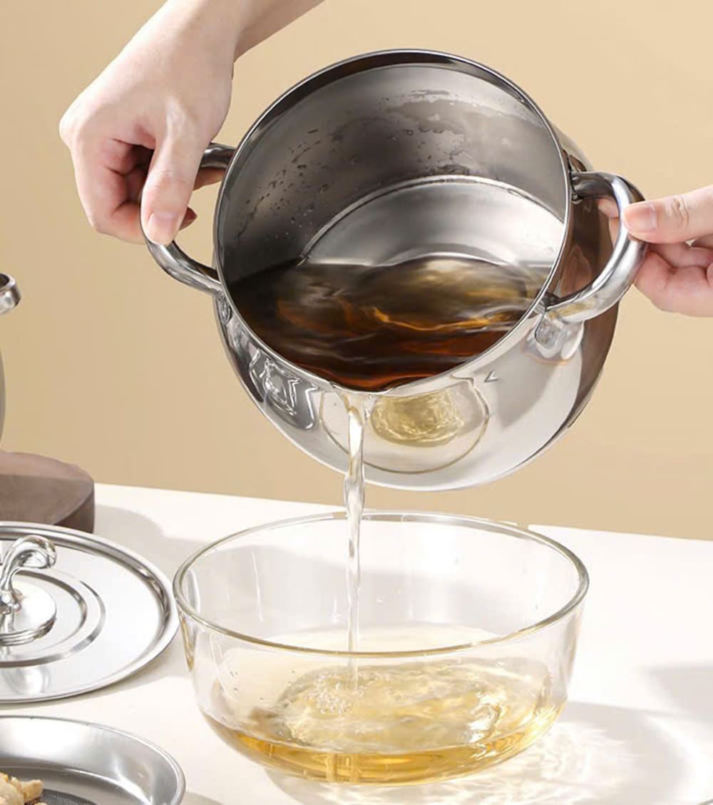 Thiết kế: Nắp đậy kín, lưới lọc mịn, tay cầm cách nhiệt