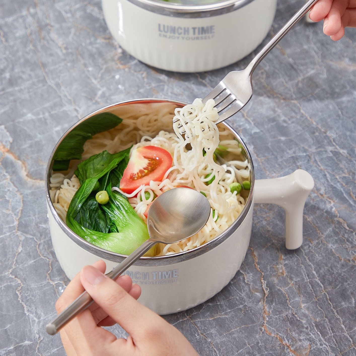 - Nắp đậy kín đáo giúp tô mì chín nhanh hơn, bảo quản thức ăn tránh côn trùng và khói bụi. Bát có thể sử dụng để dự trữ thức ăn.