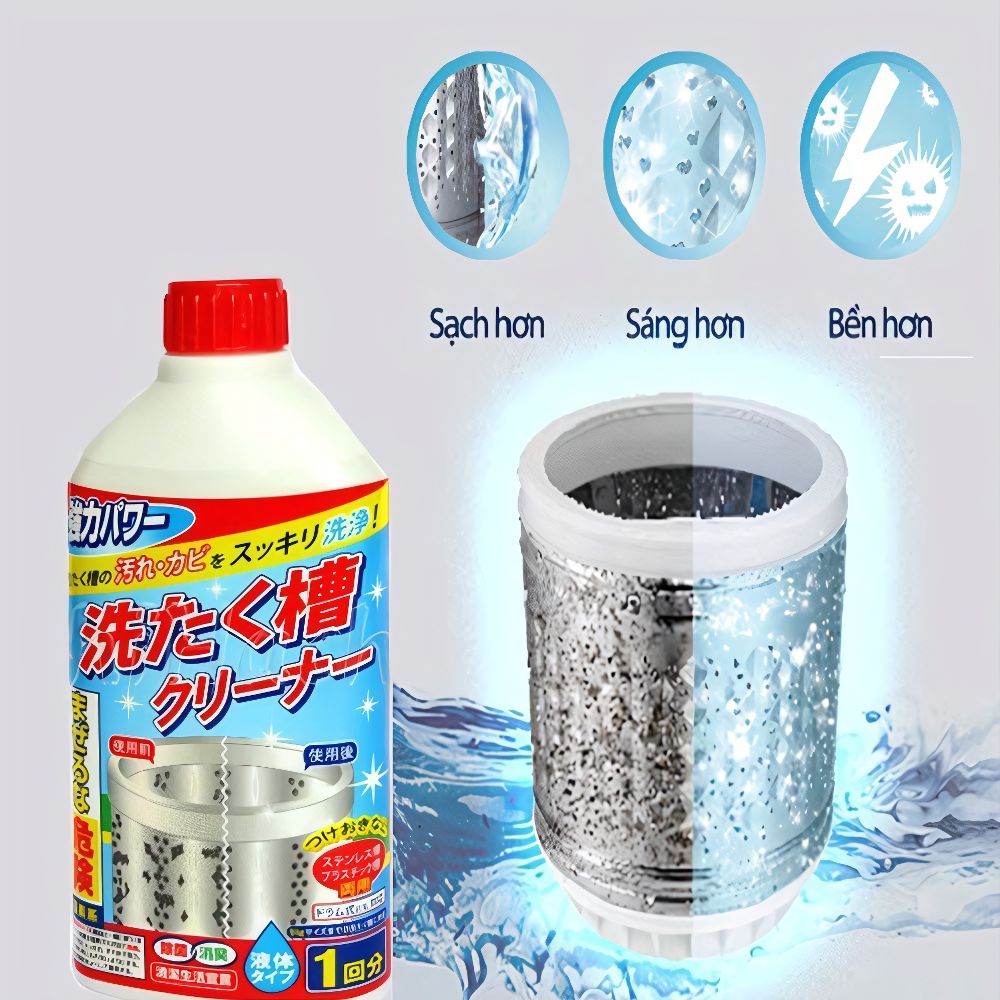 Công thức đặc biệt giúp hòa tan cặn bẩn, nấm mốc, dầu mỡ bám lâu ngày trong lồng giặt