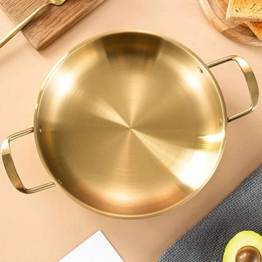 Nấu nướng chuyên nghiệp: Với khả năng dẫn nhiệt tốt và bề mặt chống dính, chảo inox mạ vàng phù hợp để chế biến nhiều loại món ăn khác nhau, từ xào, rán đến các món hầm nhẹ.