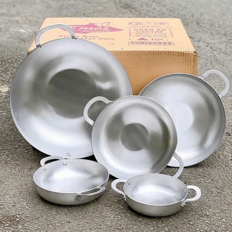 Tên sản phẩm: Chảo nhôm 2 quai đáy bằng Kim Sang cao cấp size 16cm