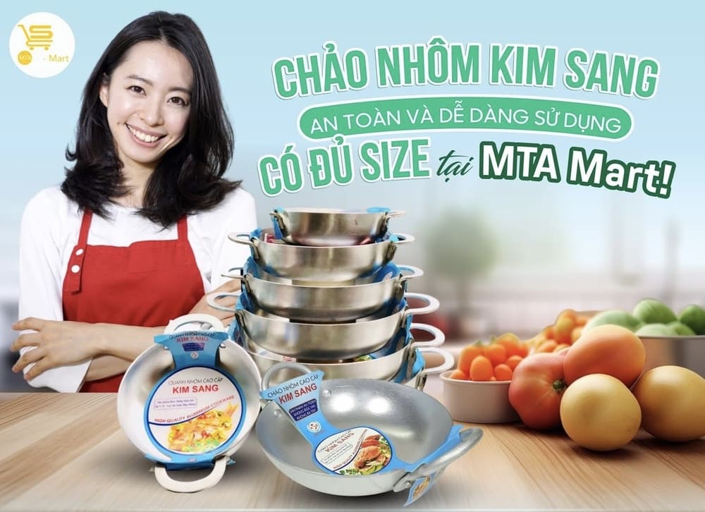 Tên sản phẩm: Chảo nhôm 2 quai đáy bằng Kim Sang cao cấp size 24cm
