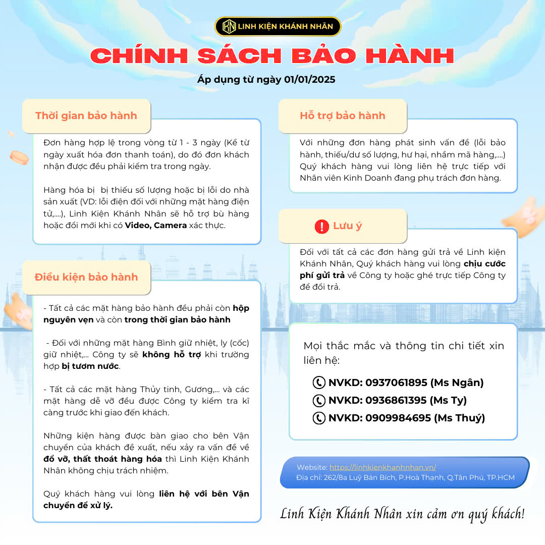 Phí đổi trả hoặc sửa chữa: Nếu sản phẩm thuộc diện bảo hành, Gia Dụng Khánh Nhân sẽ xử lý miễn phí.