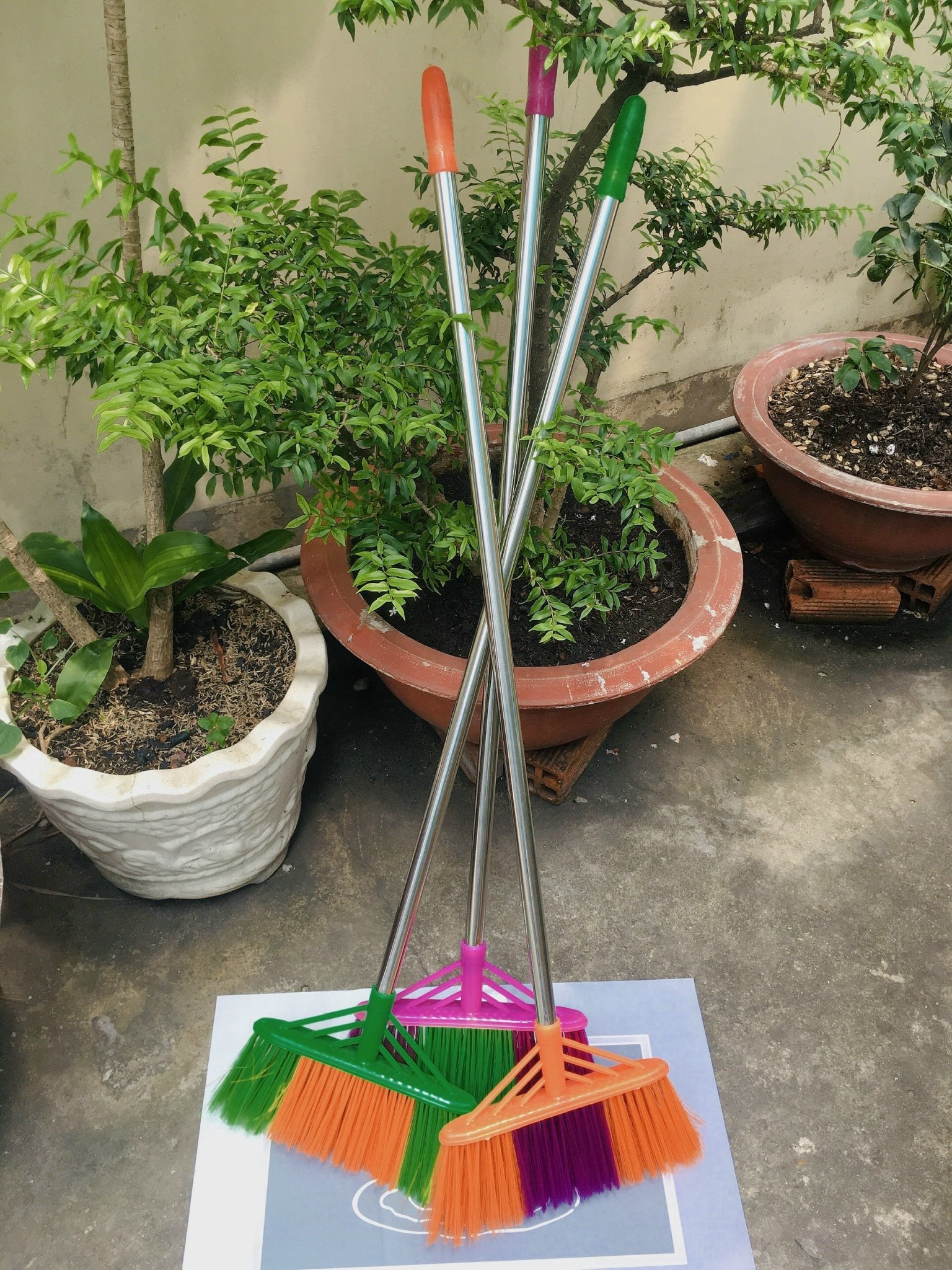 - Chất liệu: Đầu lông cước cứng cáp dễ dàng quét đi bụi bẩn, thân cán bằng inox không gỉ hoặc bằng sắt; cầm siêu nhẹ tay và chắc chắn.