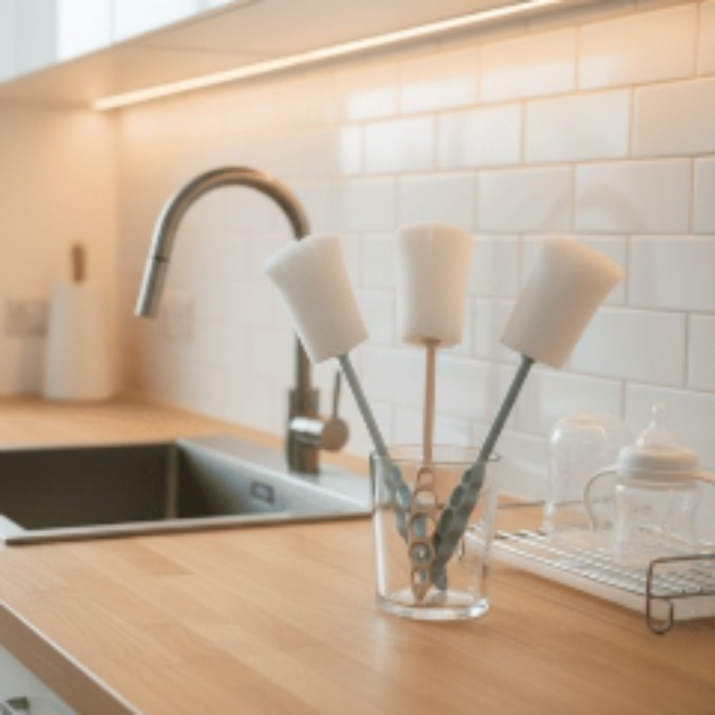 ✔️ Đầu cọ mềm dẻo nhưng chắc chắn, làm sạch mọi ngóc ngách ly bình