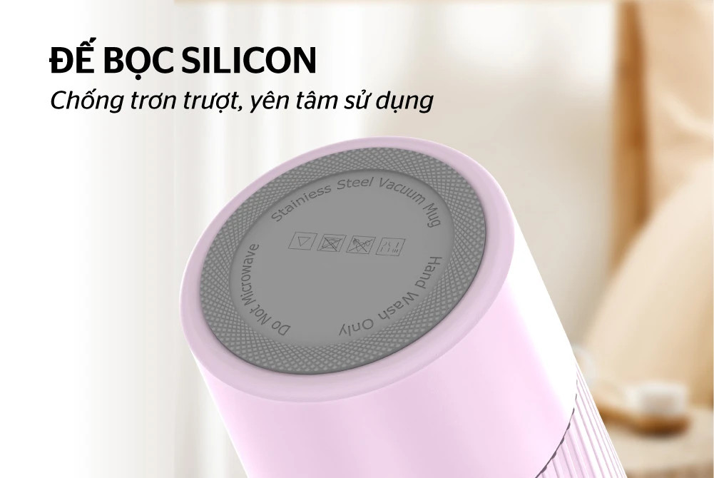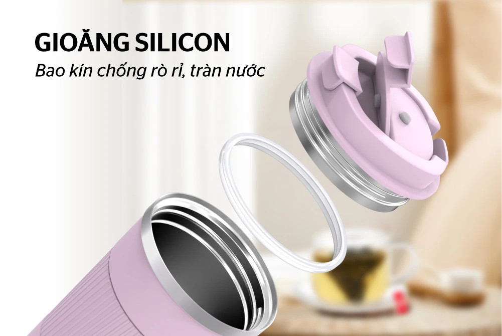 - Miệng cốc có gioăng silicone chịu nhiệt và đàn hồi tốt, giúp cốc đóng kín hơi, không lo tràn hay rò rỉ nước. Đế silicon giúp hạn chế trơn trượt, người dùng yên tâm sử dụng.