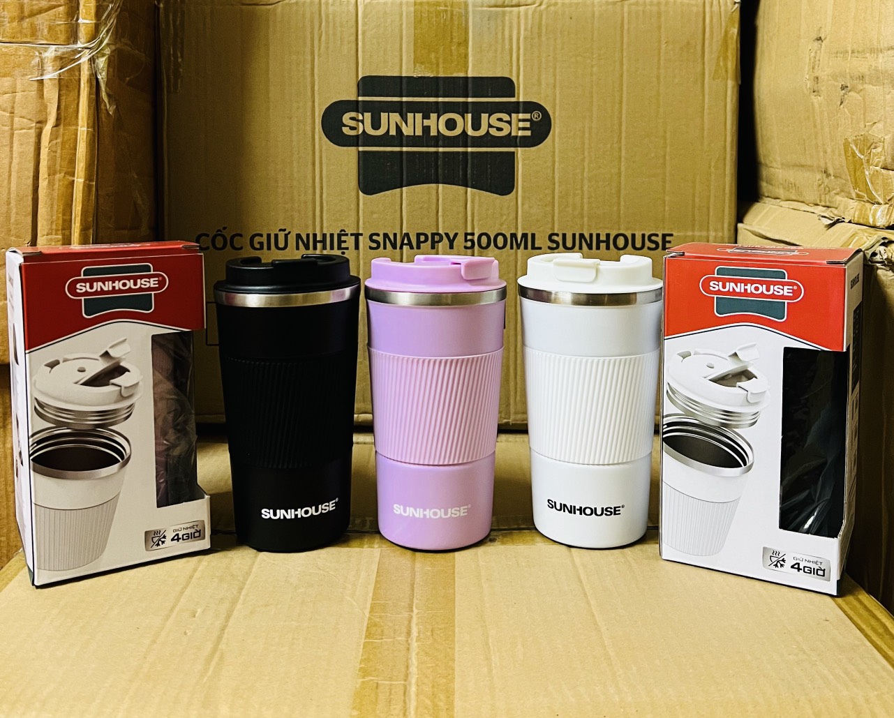 - Cốc giữ nhiệt SUNHOUSE có cấu tạo 2 lớp cách nhiệt tốt, giữ nhiệt lâu, lên tới 4 giờ.