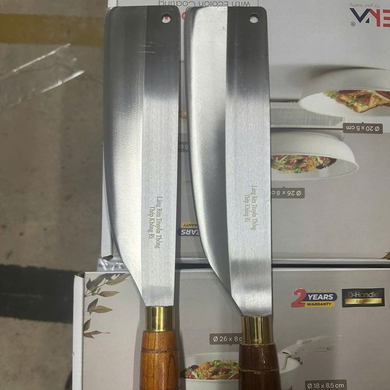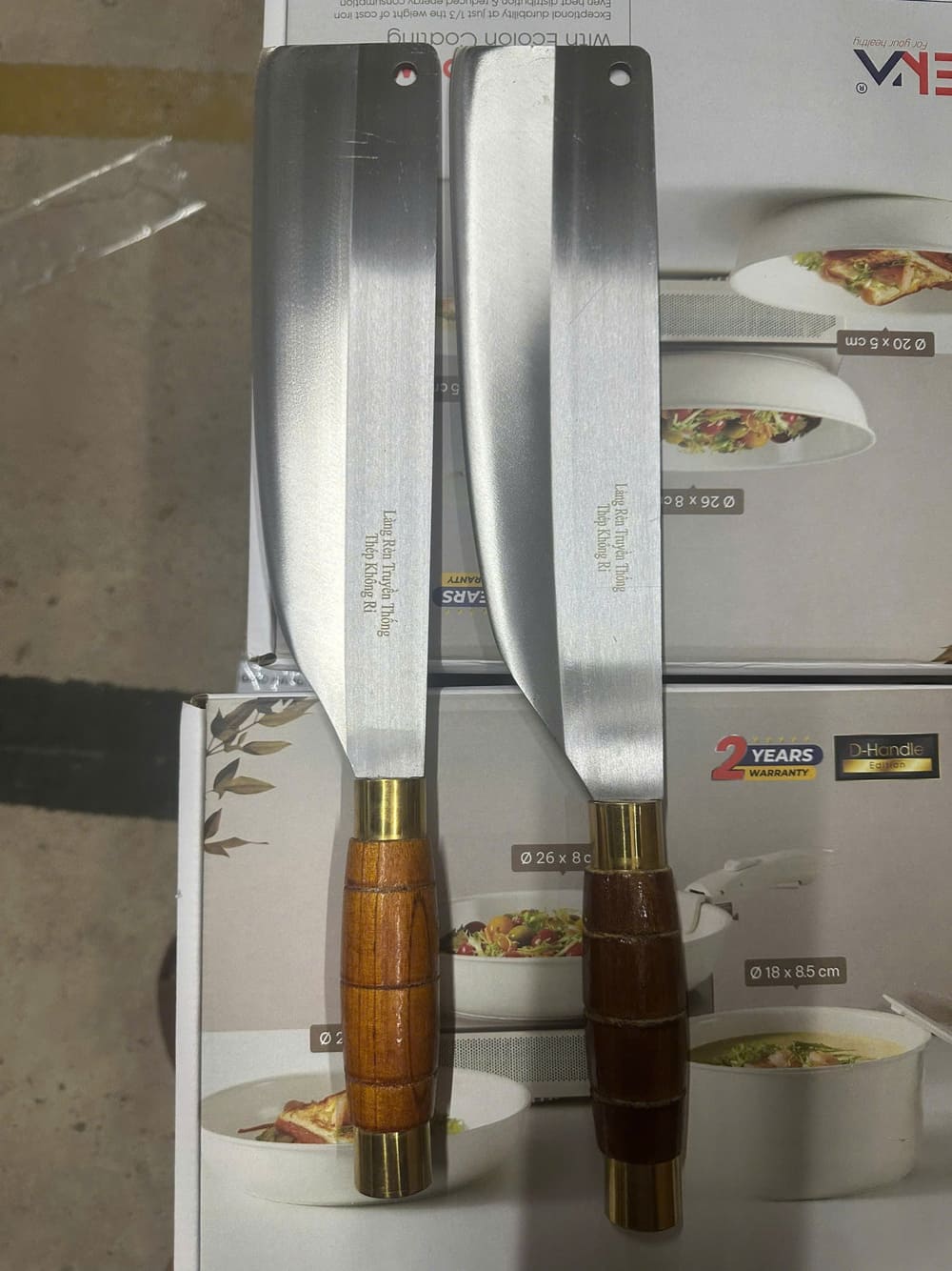 Màu sắc: Lưỡi thép sáng – cán gỗ nâu tự nhiên