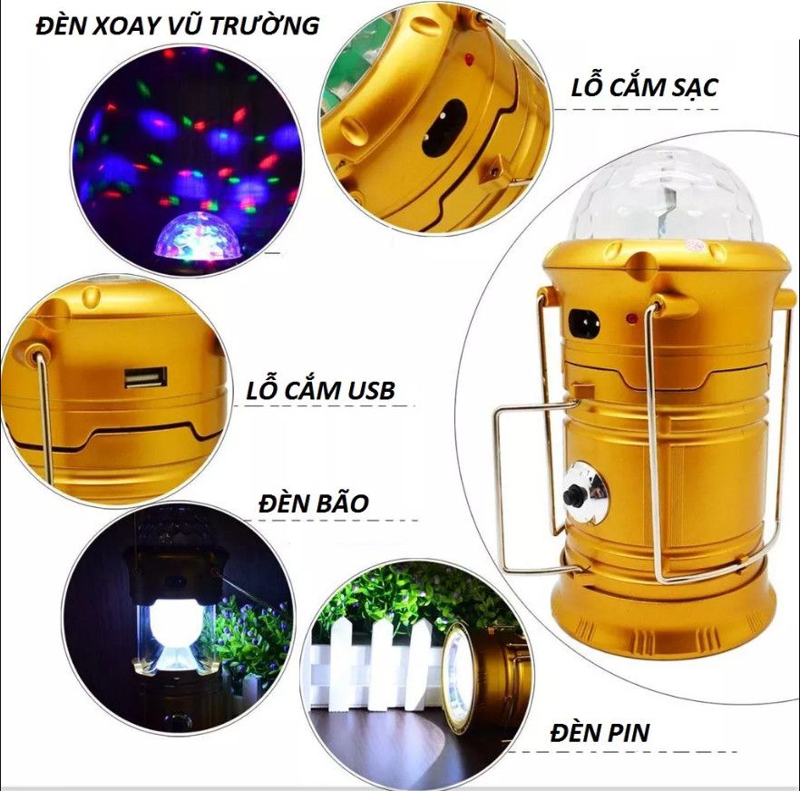 - Đèn có trang bị ổ cắm USB dùng làm pin dự phòng để sạc pin cho điện thoại.