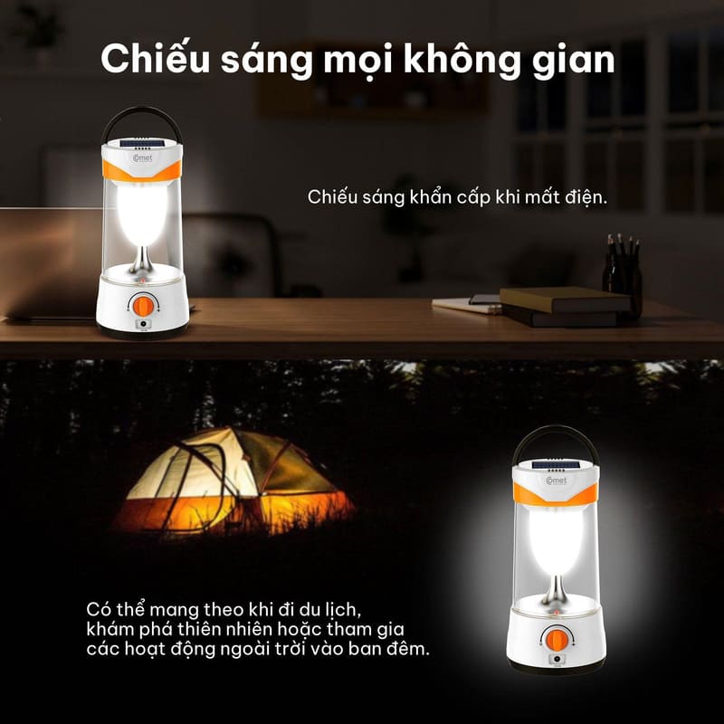 Đèn sạc Comet CRL3103S hoạt động bằng năng lượng mặt trời, chiếu sáng mạnh mẽ và tiết kiệm điện. Thiết kế gọn nhẹ, xách tay tiện dụng, phù hợp dùng ngoài trời, trong nhà khi mất điện hoặc các hoạt động dã ngoại. Đèn bền bỉ, chống nước và pin tích điện lâu, mang đến giải pháp chiếu sáng thân thiện môi trường. 🌞💡