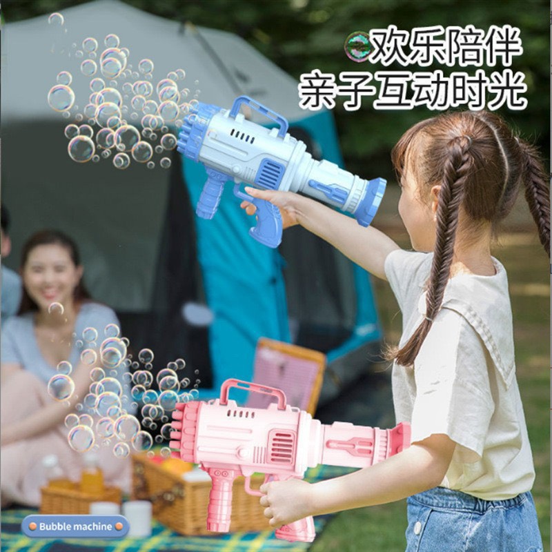 - Súng bắn bong bóng 32 nòng chạy bằng pin: súng siêu cấp rất thú vị, với thiết kế chân thực, màu sắc tươi tắn, chiếc súng thổi bong bóng chỉ cần chạm vào chất dung dịch xà phòng và bóp cò, cánh quạt bên trong sẽ hoạt động và thổi ra rất rất nhiều bong bóng.