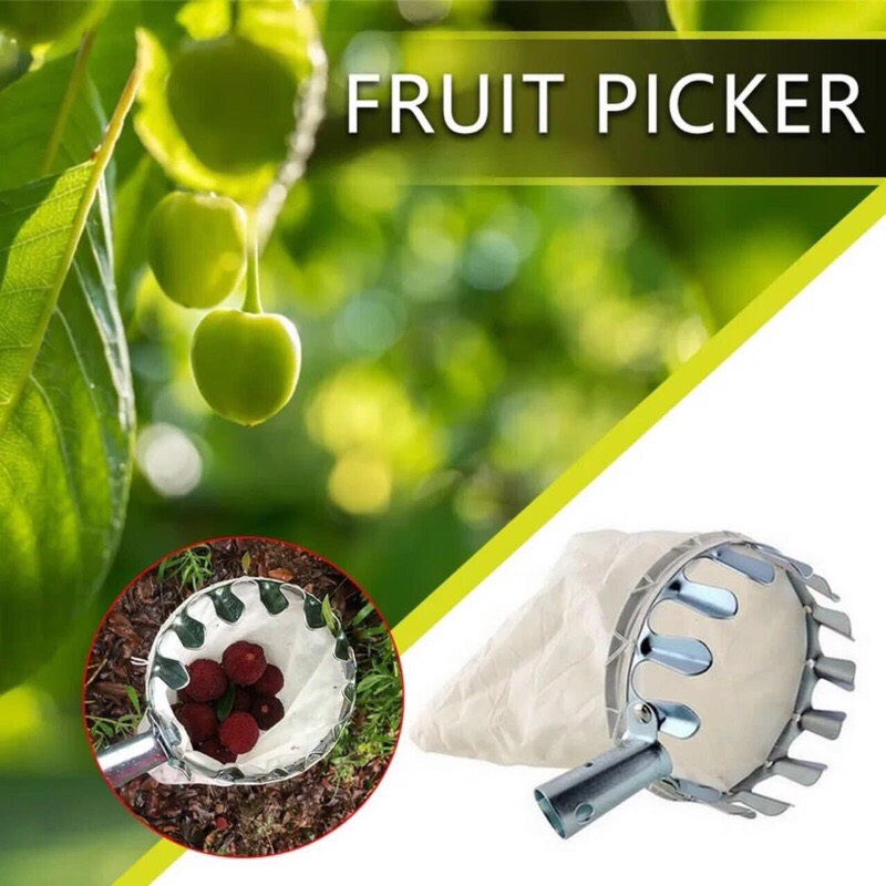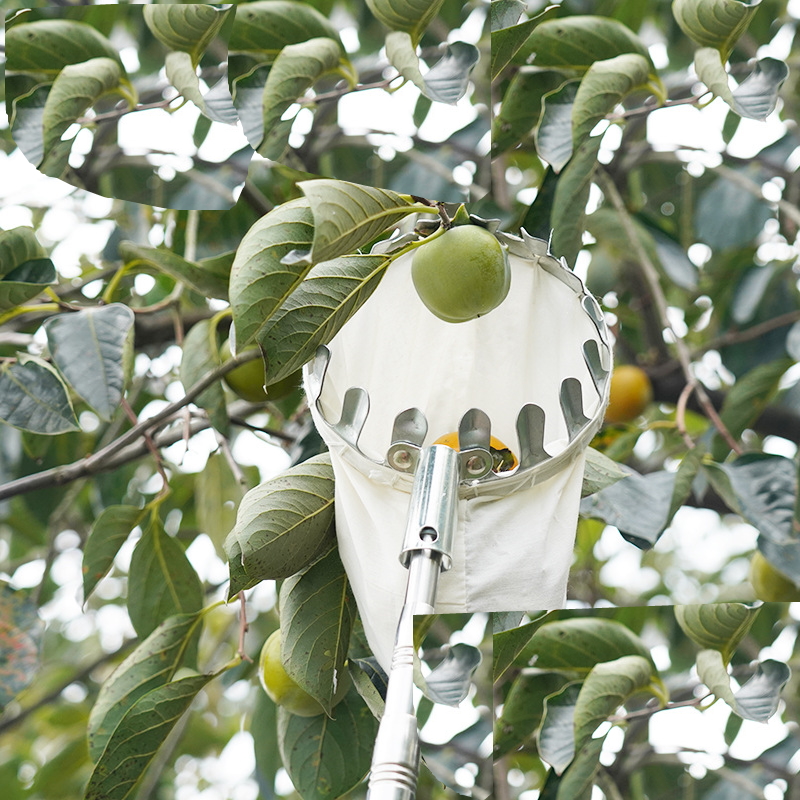 🔸 Dụng cụ hái trái cây trên cao chế tạo bằng kim loại chắc chắn, túi vải đi kèm bằng vải trắng.