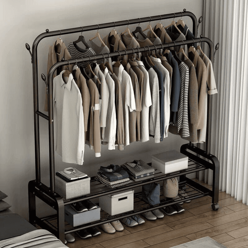 Giờ đây, tất cả những bất tiện trong công đoạn phơi phóng quần áo đã được giải quyết với giá treo phơi quần áo thông minh 2 tầng có bánh xe di chuyển.