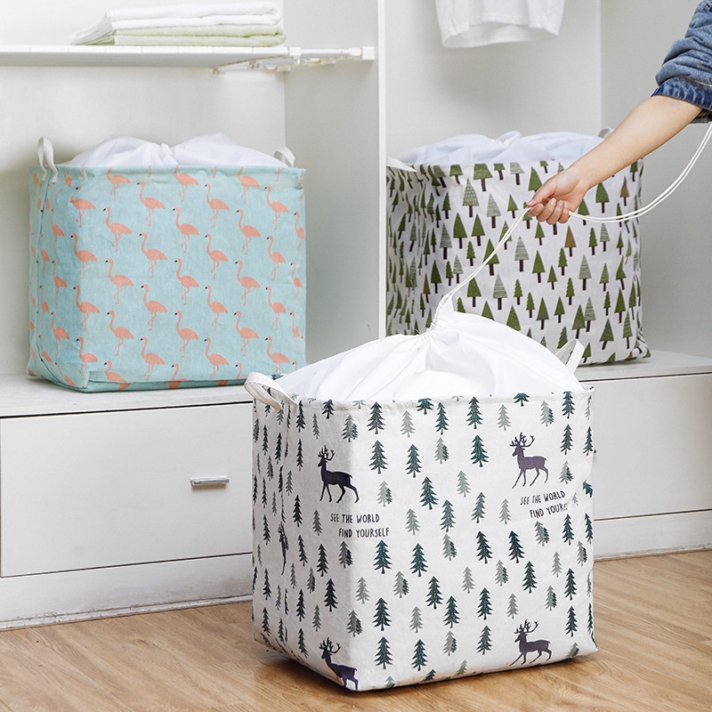 ⚡Giỏ vải có kích thước lớn nên đựng được rất nhiều chăn màn, quần áo, phía trên túi là lớp vải rút chống bụi bẩn tiện lợi. 😍😍😍