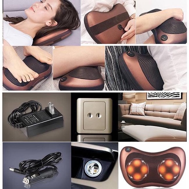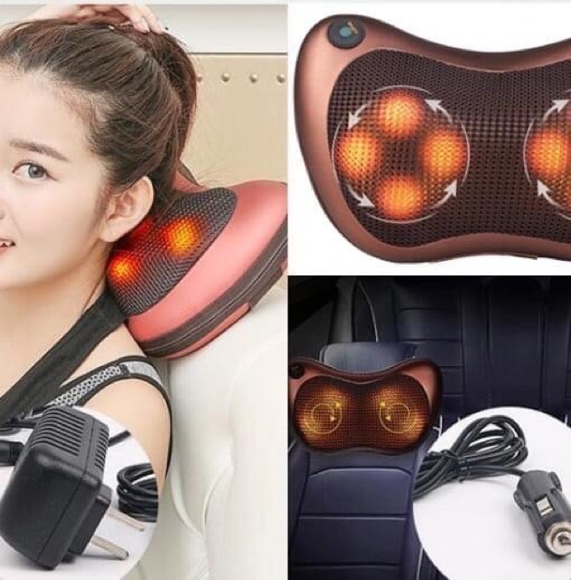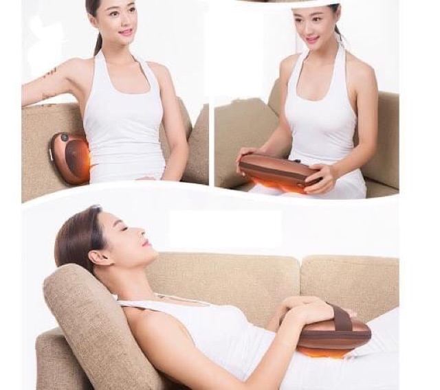GỐI MASSAGE 8 BI với dạng massage 3D, phân nhiệt thành 4 điểm nóng, giúp nhiệt tán đều ra vùng đau, giúp giảm đau hiệu quả và đem lại cảm giác thoải mái.