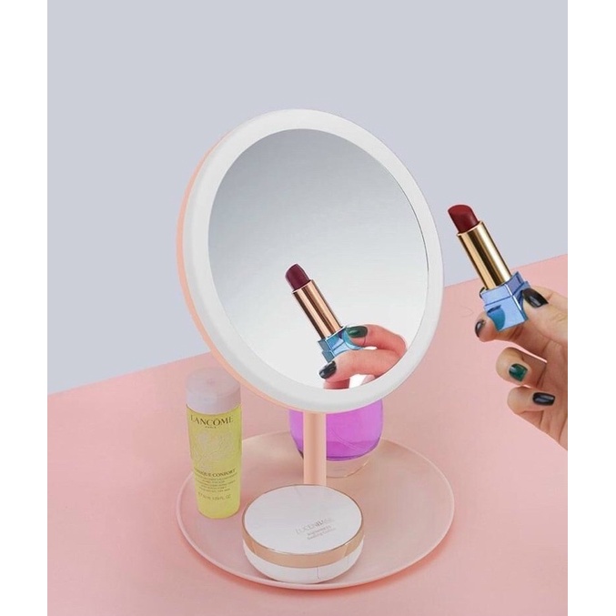 - Gương to tròn, rất rõ nét. Đèn viền Led sáng rõ rất đẹp giúp việc trang điểm của bạn luôn dễ dàng và sắc nét đến tận lỗ chân lông.