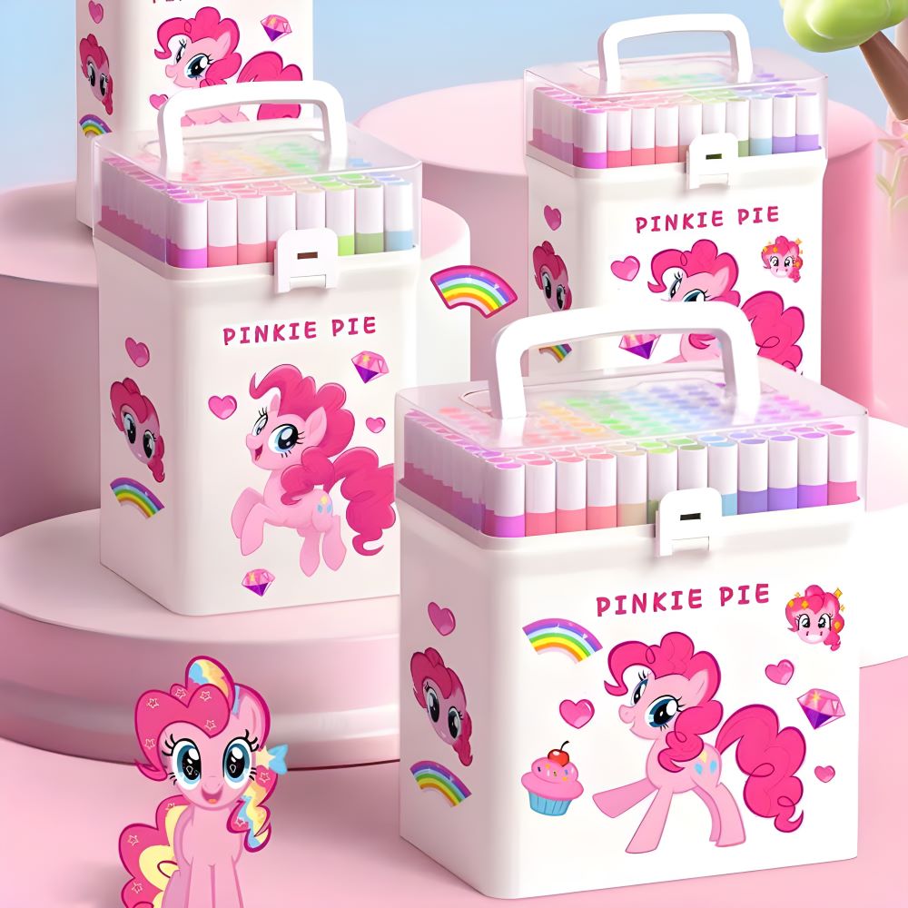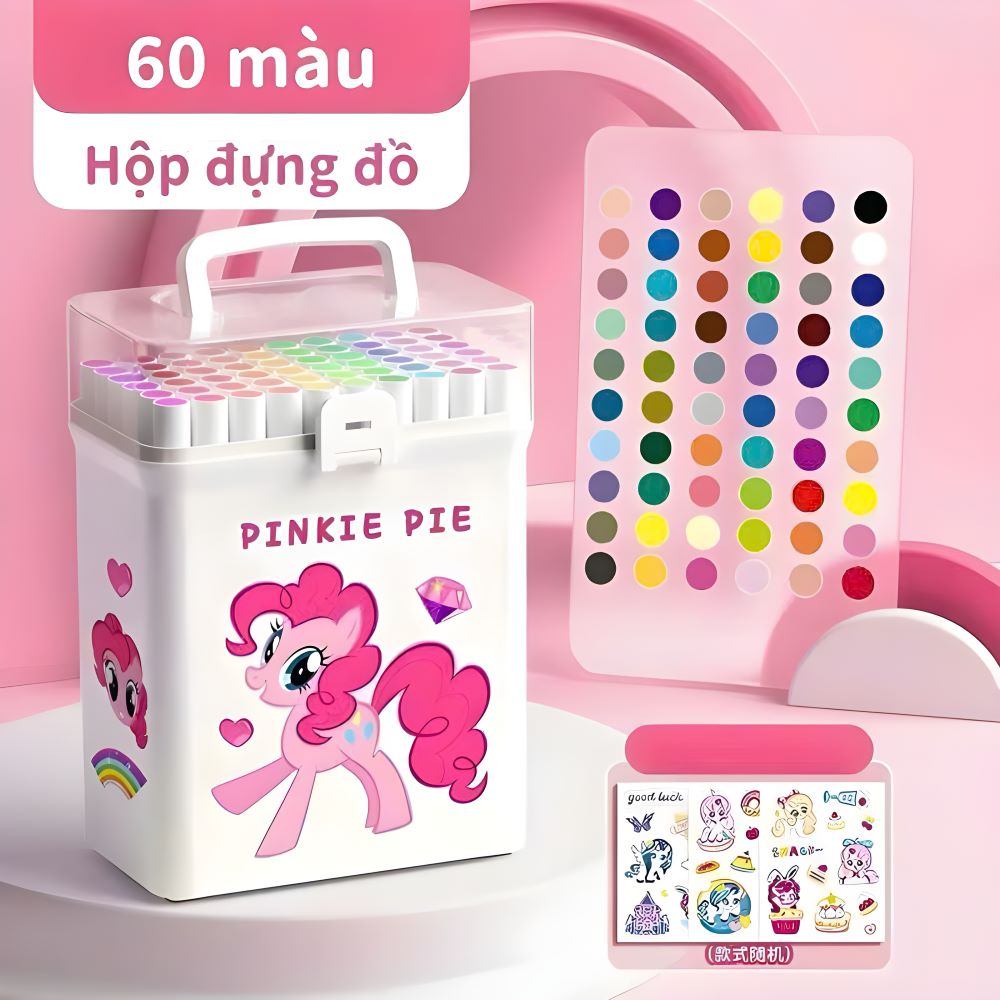 Bộ bút màu Marker Acrylic 60 màu gây ấn tượng với hộp đựng thiết kế đáng yêu hình nhân vật Pinkie Pie từ bộ phim hoạt hình nổi tiếng My Little Pony. Hộp đựng được làm từ nhựa cứng chắc chắn, có quai xách tiện lợi, giúp dễ dàng mang theo và bảo quản an toàn các cây bút.