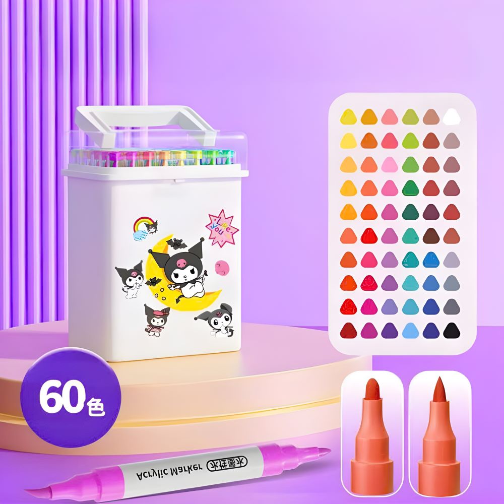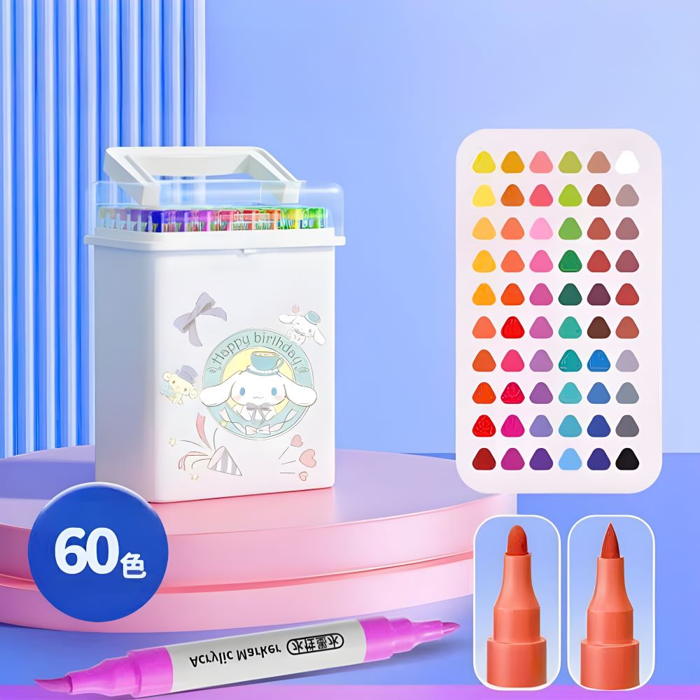 Bộ bút màu Marker Acrylic với 60 màu sắc phong phú được đựng trong hộp nhựa cao cấp thiết kế dễ thương. Sản phẩm với công nghệ mực chống nước, bền màu giúp việc tô màu, vẽ tranh trở nên dễ dàng và chuyên nghiệp hơn, phù hợp với nhiều đối tượng từ học sinh đến người đam mê hội họa.