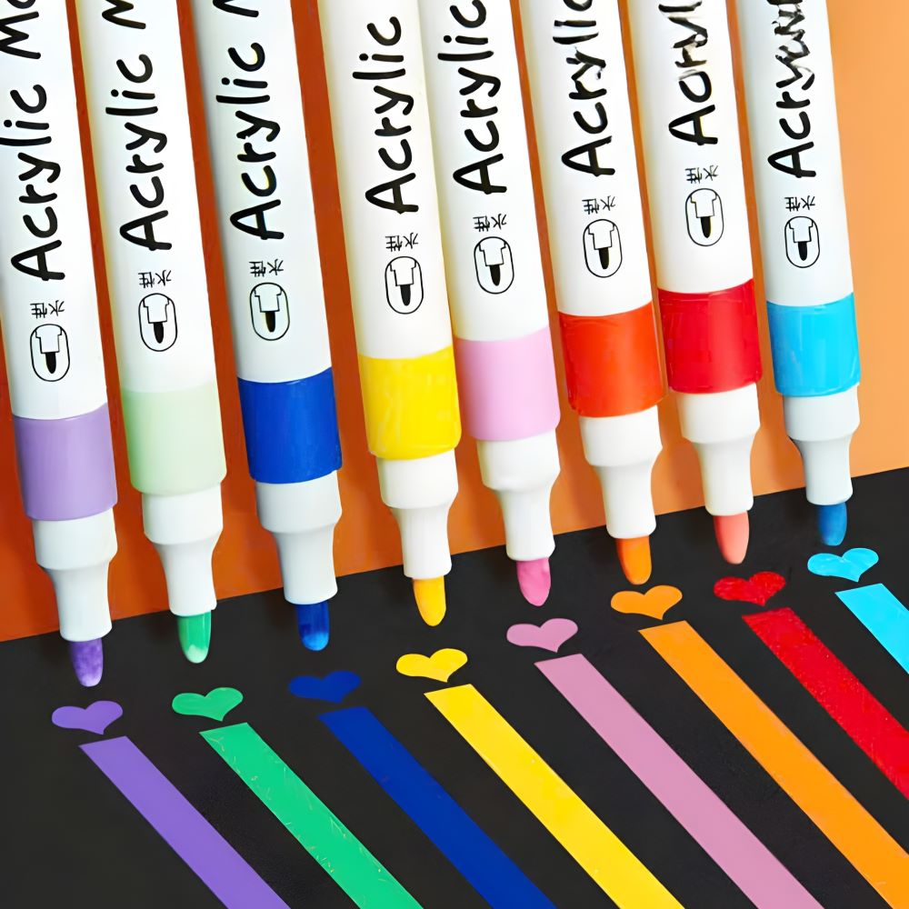 Đặc biệt, mực Acrylic chống nước, không phai màu, lên màu đẹp và sống động trên nhiều bề mặt khác nhau như giấy, bìa, vải, gỗ... Các bút được sắp xếp gọn gàng theo bảng màu, dễ dàng lựa chọn và sử dụng.